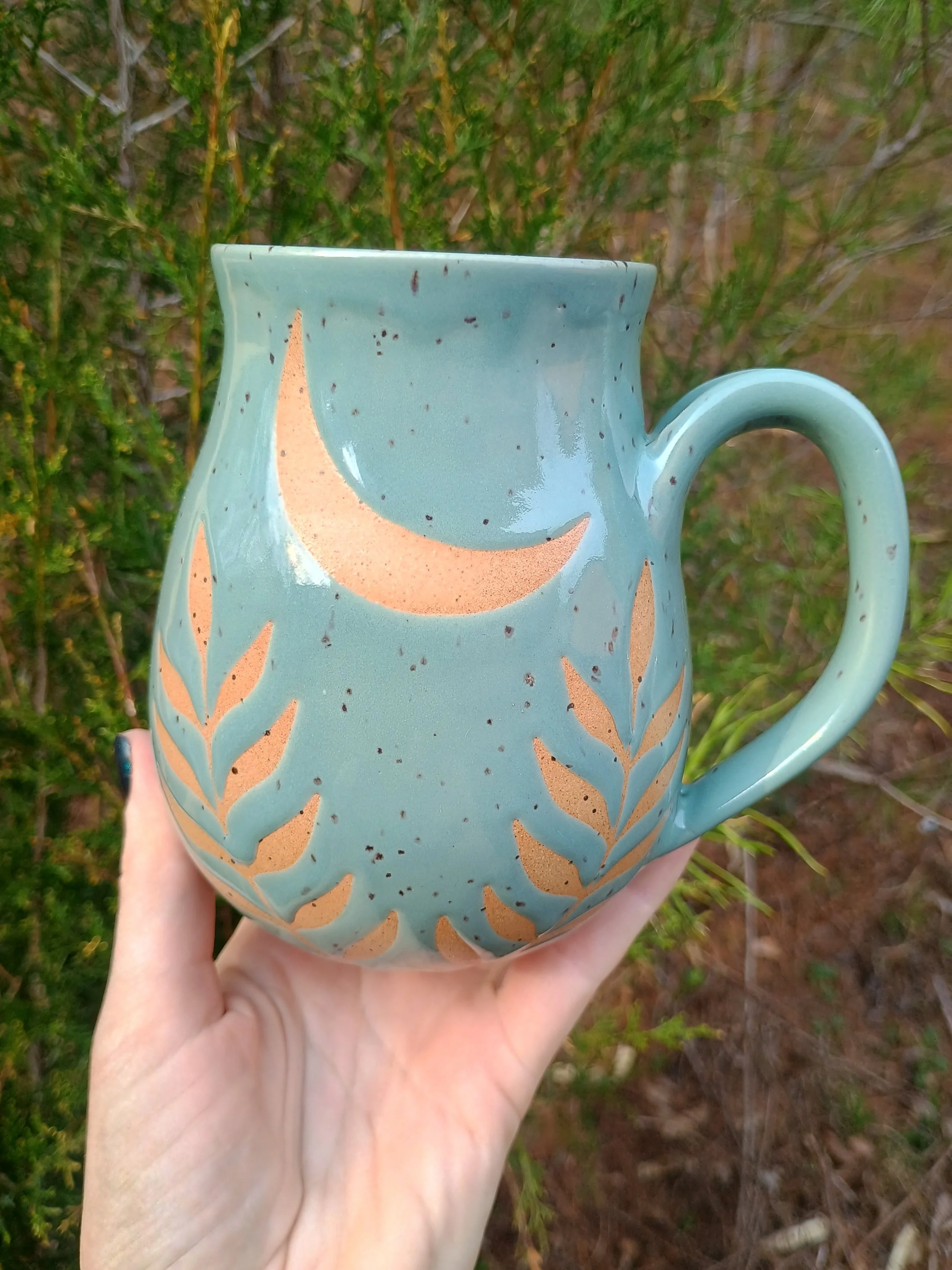 Shop › Moon & Ferns Mug Image 1 of 4 Image 2 of 4 Image 3 of 4 Image 4 of 4 Moon & Ferns Mug $65.00 Microwave and dishwasher safe but hand washing is strongly encouraged 💕 Add To Cart Added! Microwave and dishwasher safe but hand washing is strongly encouraged 💕