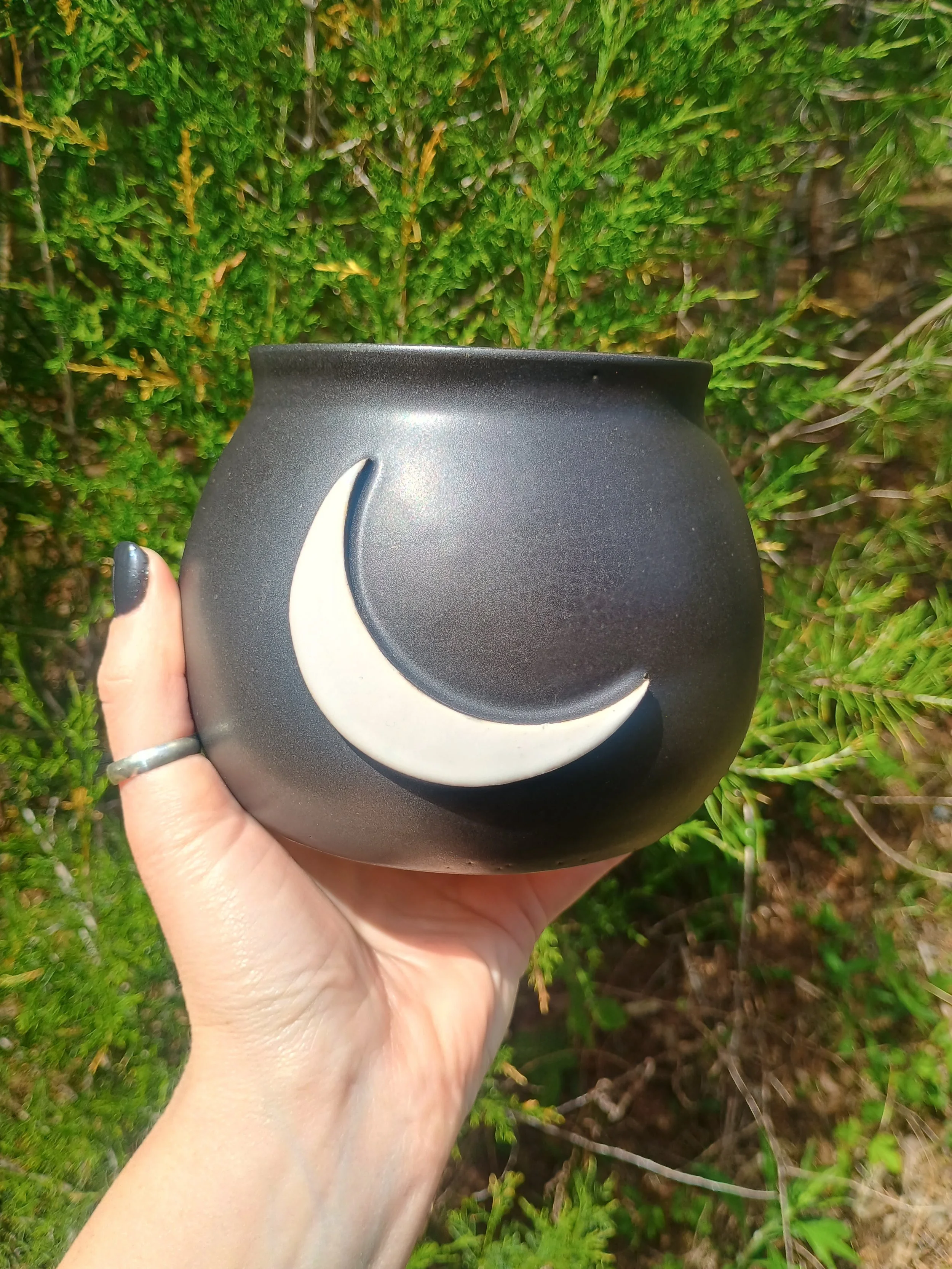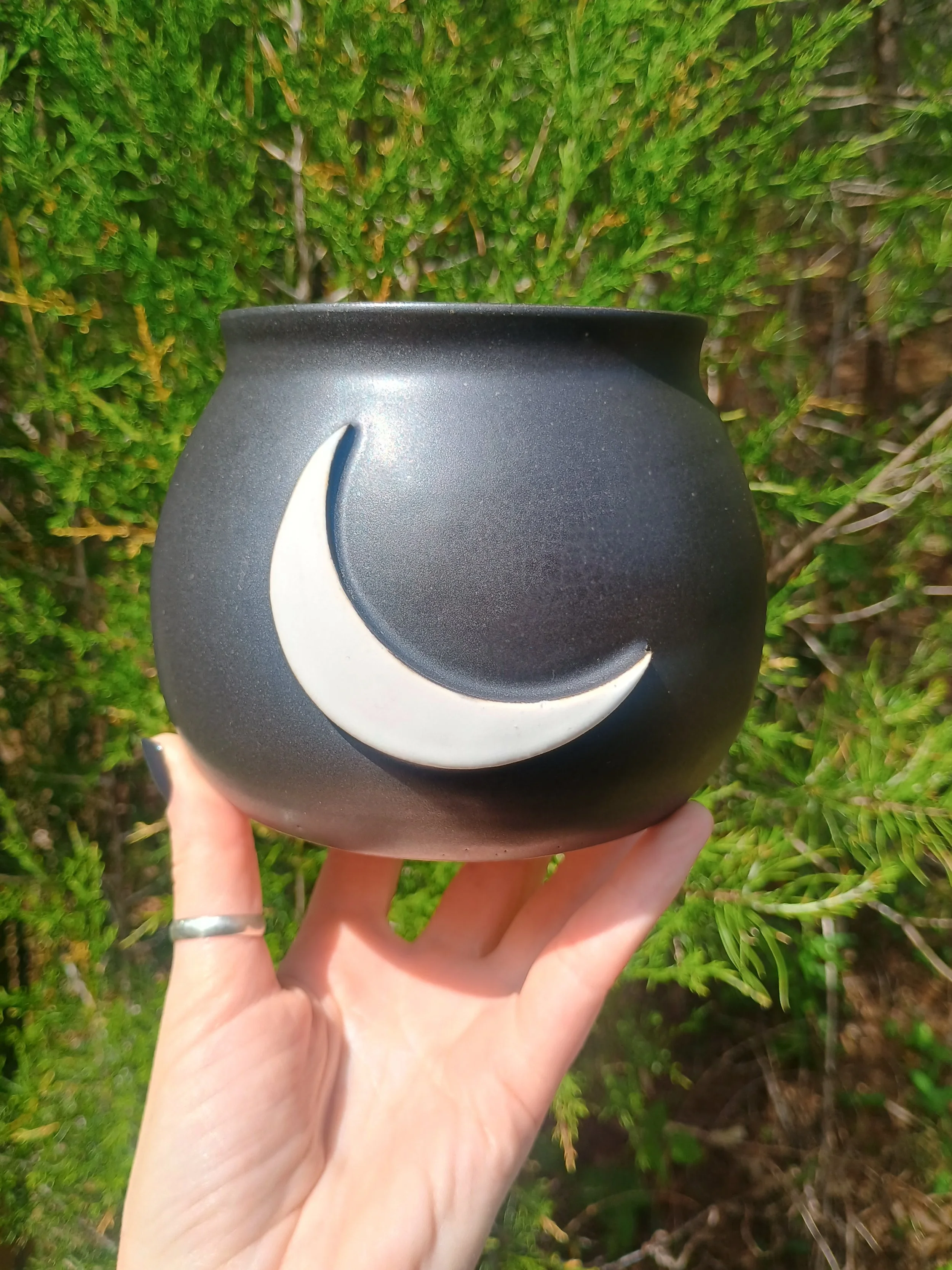 Shop › Satin Black 3D Moon Planter Image 1 of 4 Image 2 of 4 Image 3 of 4 Image 4 of 4 Satin Black 3D Moon Planter $55.00 Measures 4.25” tall and 4” wide at the opening Add To Cart Added! Measures 4.25” tall and 4” wide at the opening