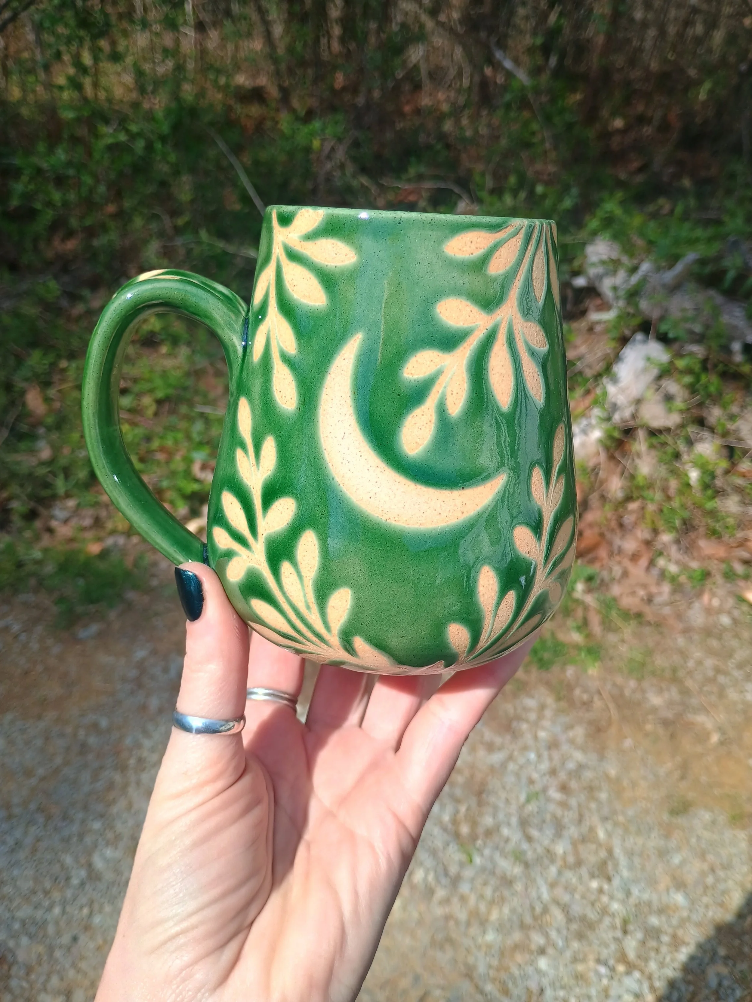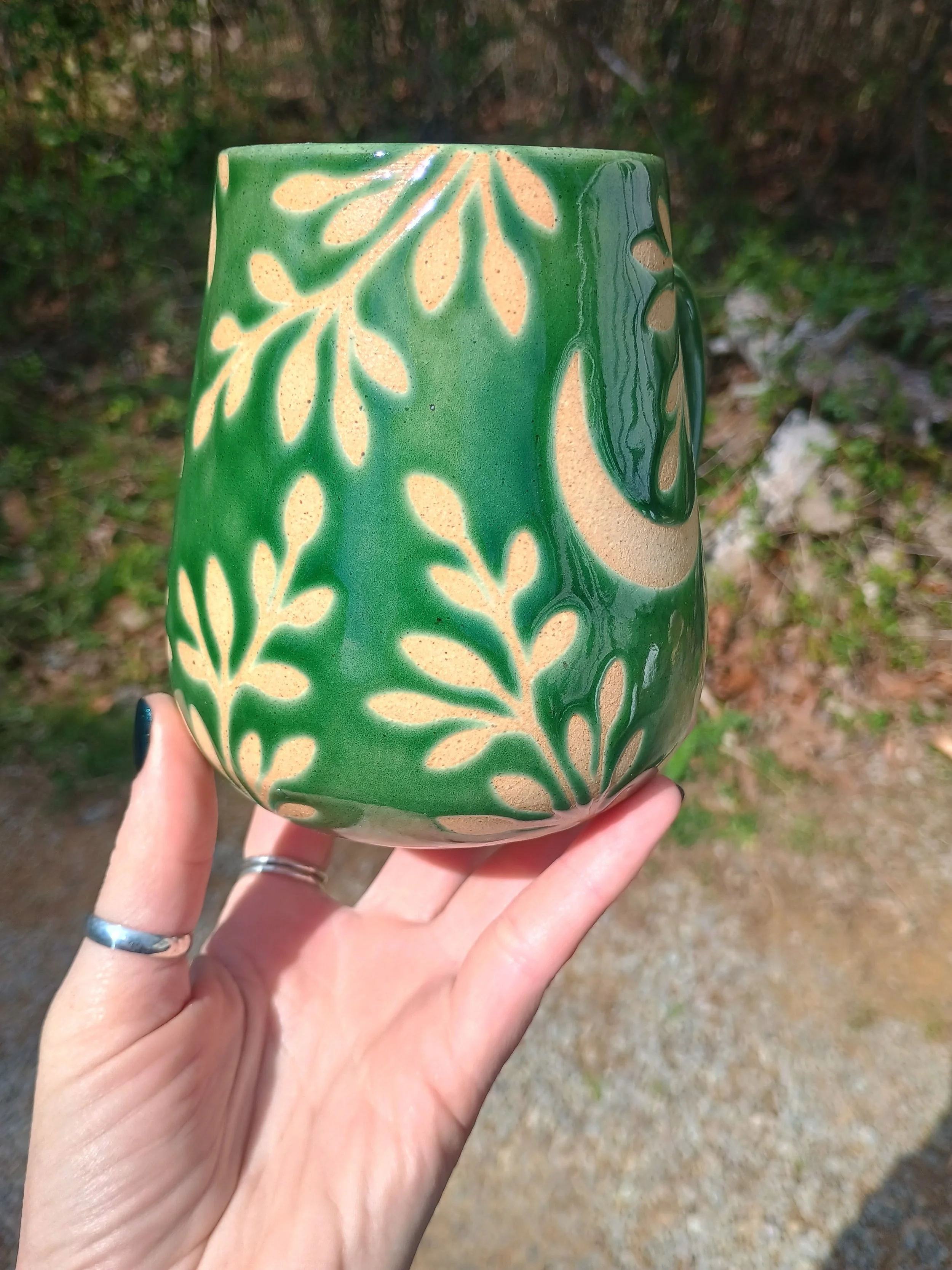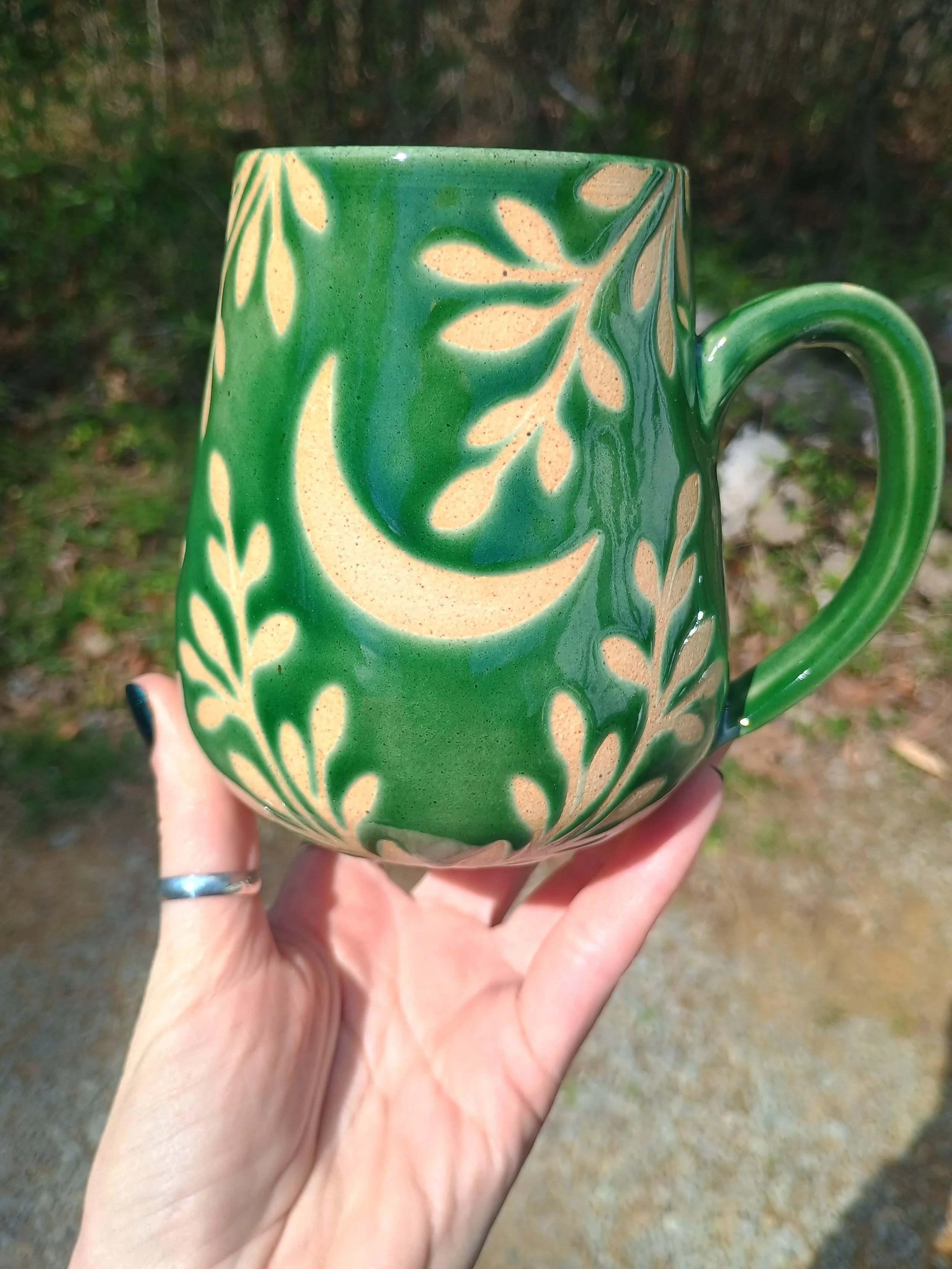 Shop › Moon & Fronds Mug Image 1 of 6 Image 2 of 6 Image 3 of 6 Image 4 of 6 Image 5 of 6 Image 6 of 6 Moon & Fronds Mug $75.00 Microwave and dishwasher safe but hand washing is strongly encouraged 💕 Add To Cart Added! Microwave and dishwasher safe but hand washing is strongly encouraged 💕