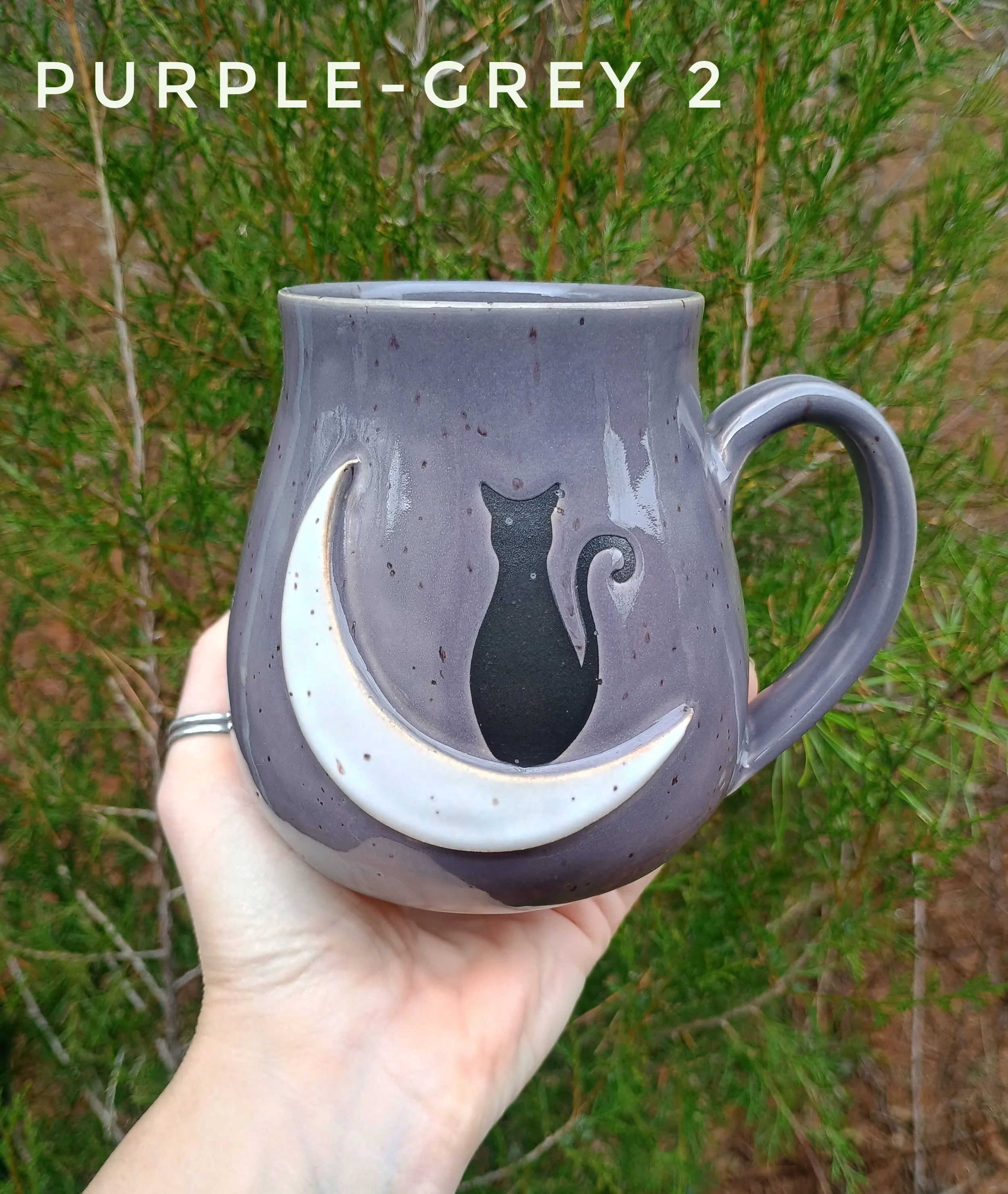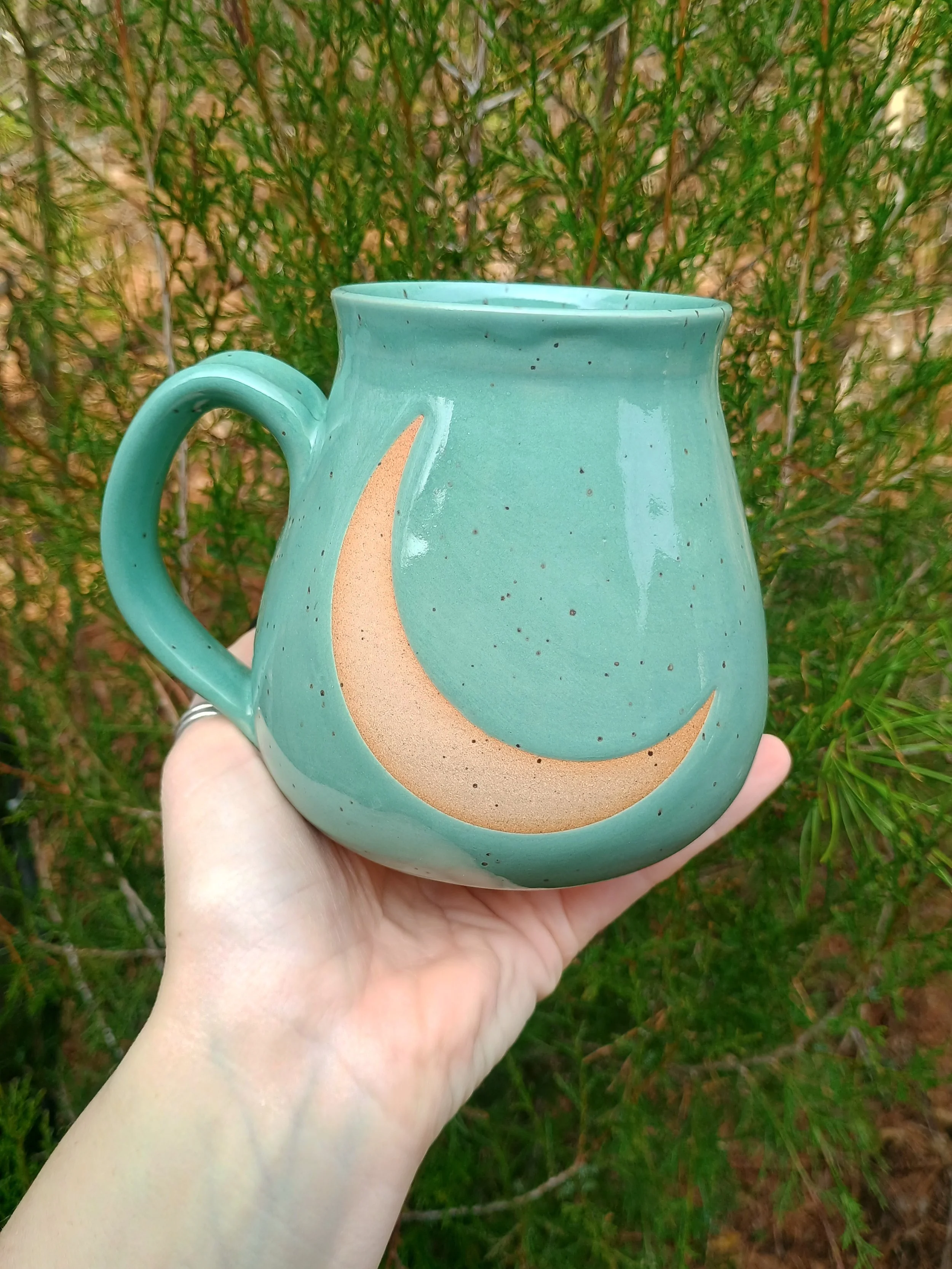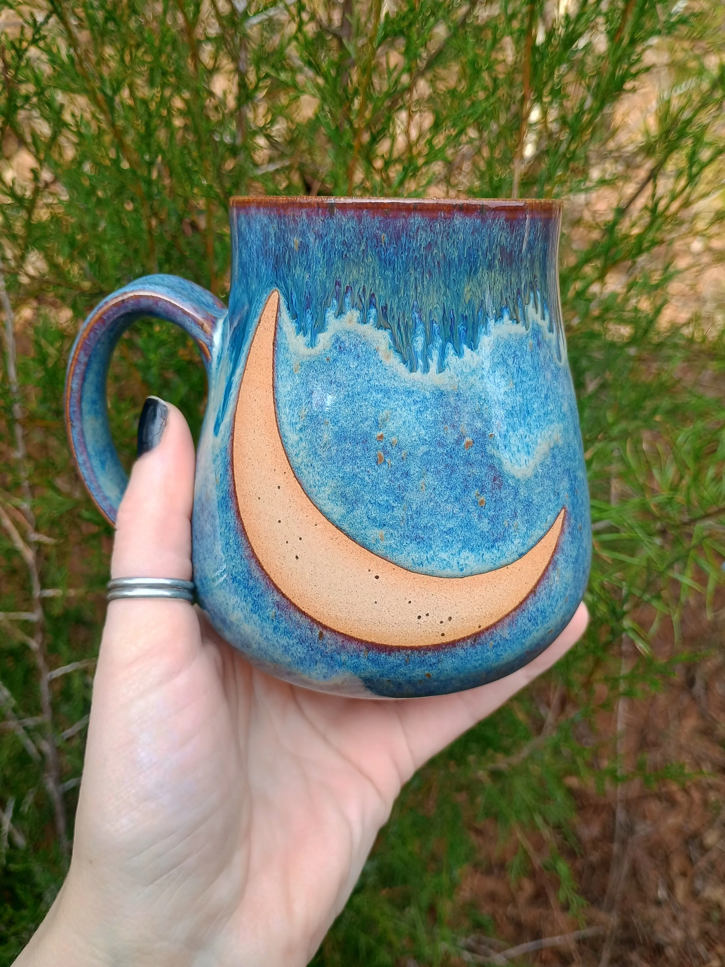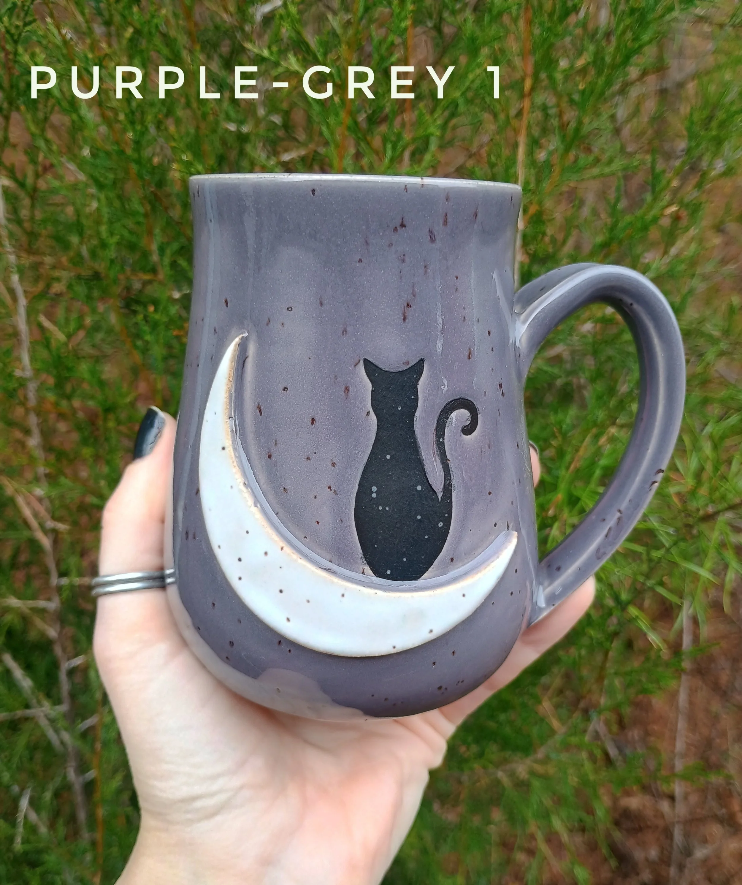 Shop › Cat & Moon Mugs Image 1 of 10 Image 2 of 10 Image 3 of 10 Image 4 of 10 Image 5 of 10 Image 6 of 10 Image 7 of 10 Image 8 of 10 Image 9 of 10 Image 10 of 10 Cat & Moon Mugs from $77.00 All mugs have a speckled crescent moon on the back! Microwave and dishwasher safe but hand washing is strongly encouraged 💕 Which mug?: Select Which mug? Seafoam 1 Seafoam 2 Purple-Grey 1 Purple-Grey 2 Blue Cascade 1 Blue Cascade 2 Quantity: Add To Cart Added! All mugs have a speckled crescent moon on the back! Microwave and dishwasher safe but hand washing is strongly encouraged 💕 ADD ON Glitter Ring Dish $14.00 Add To Cart