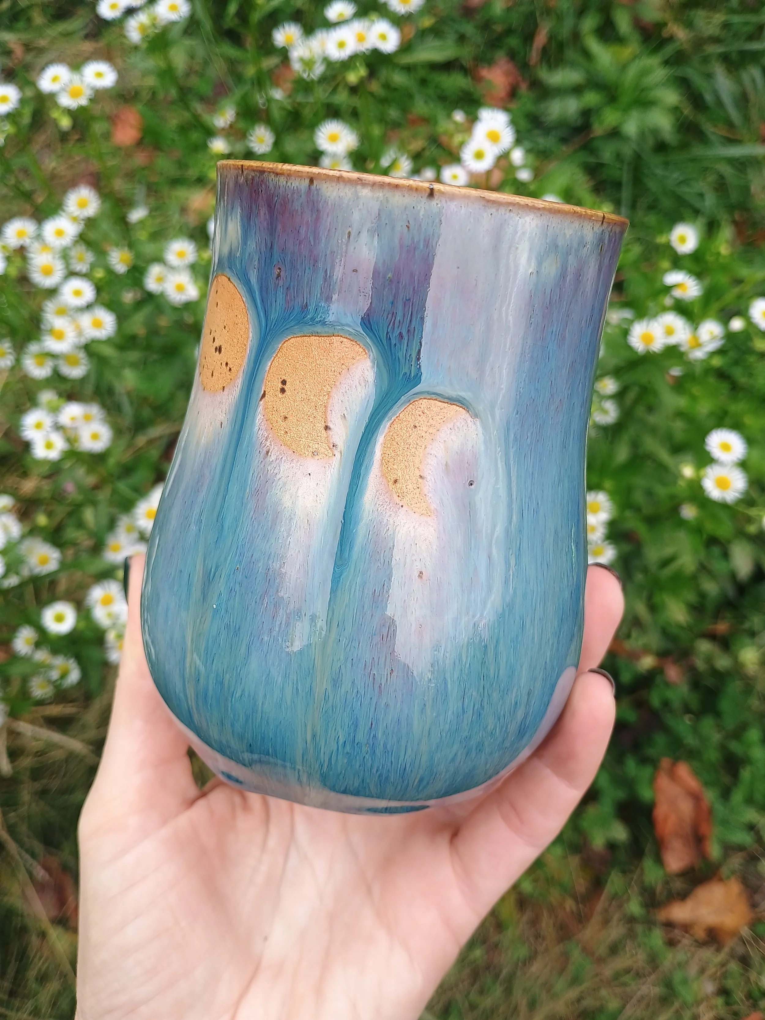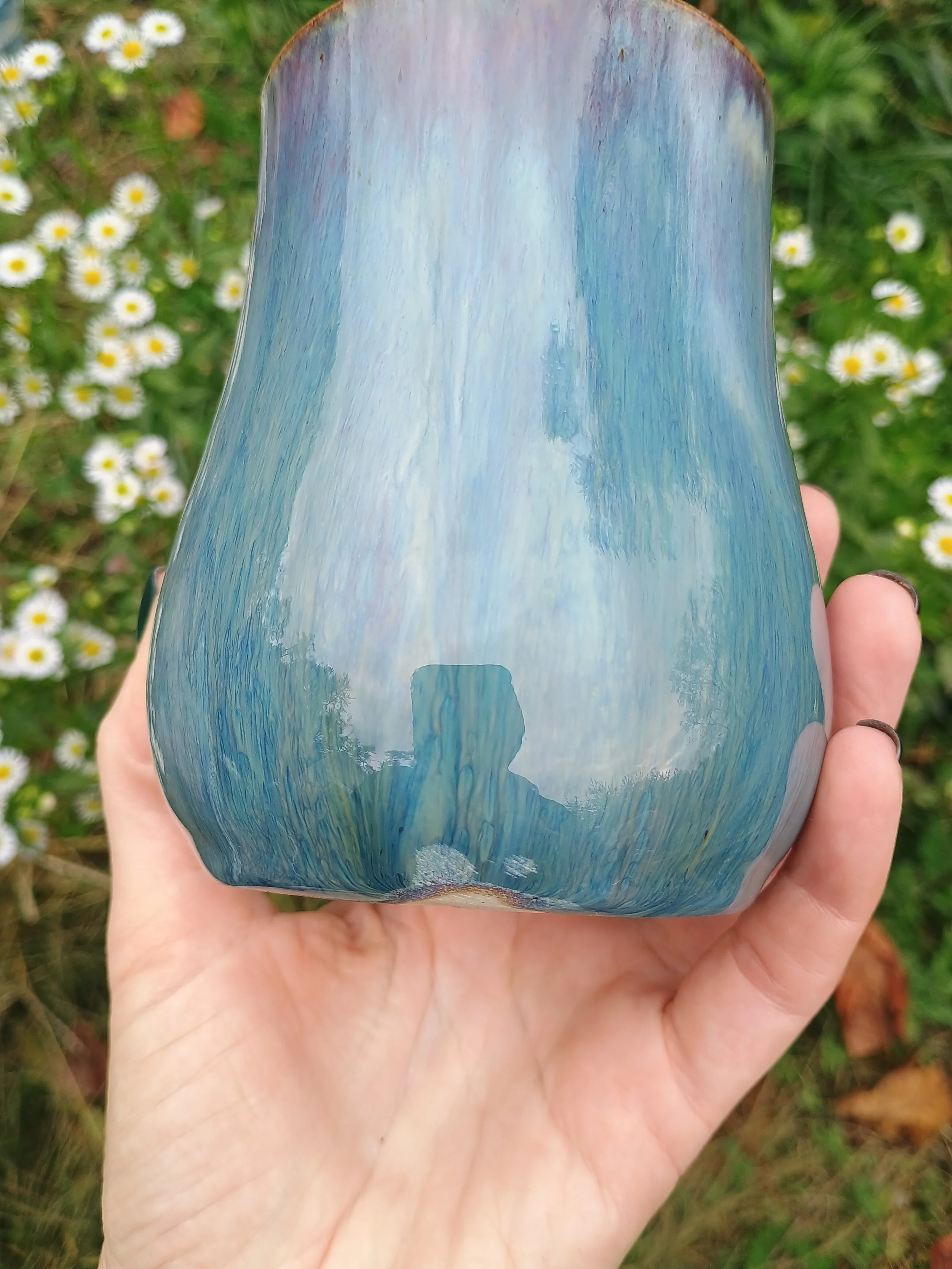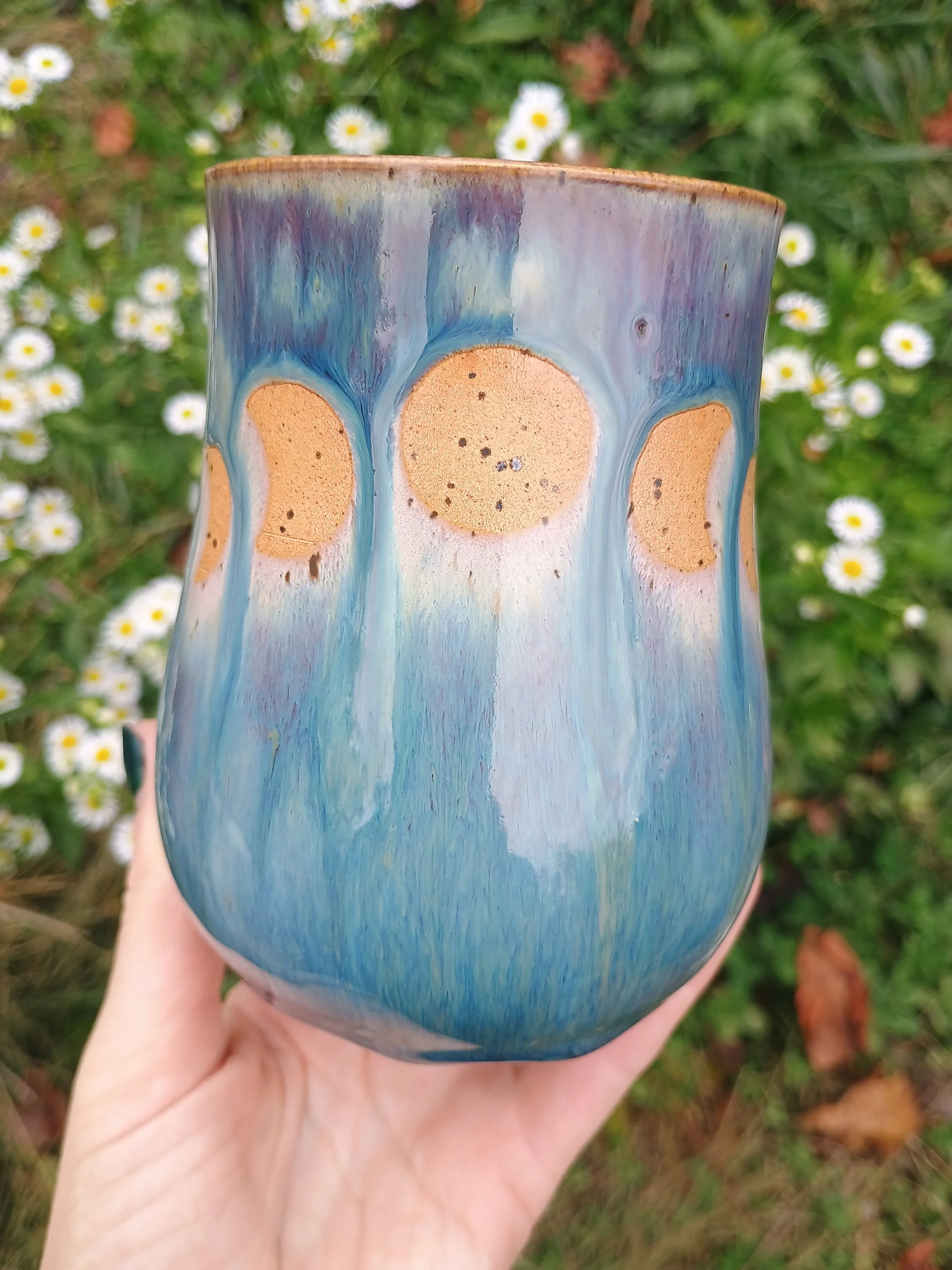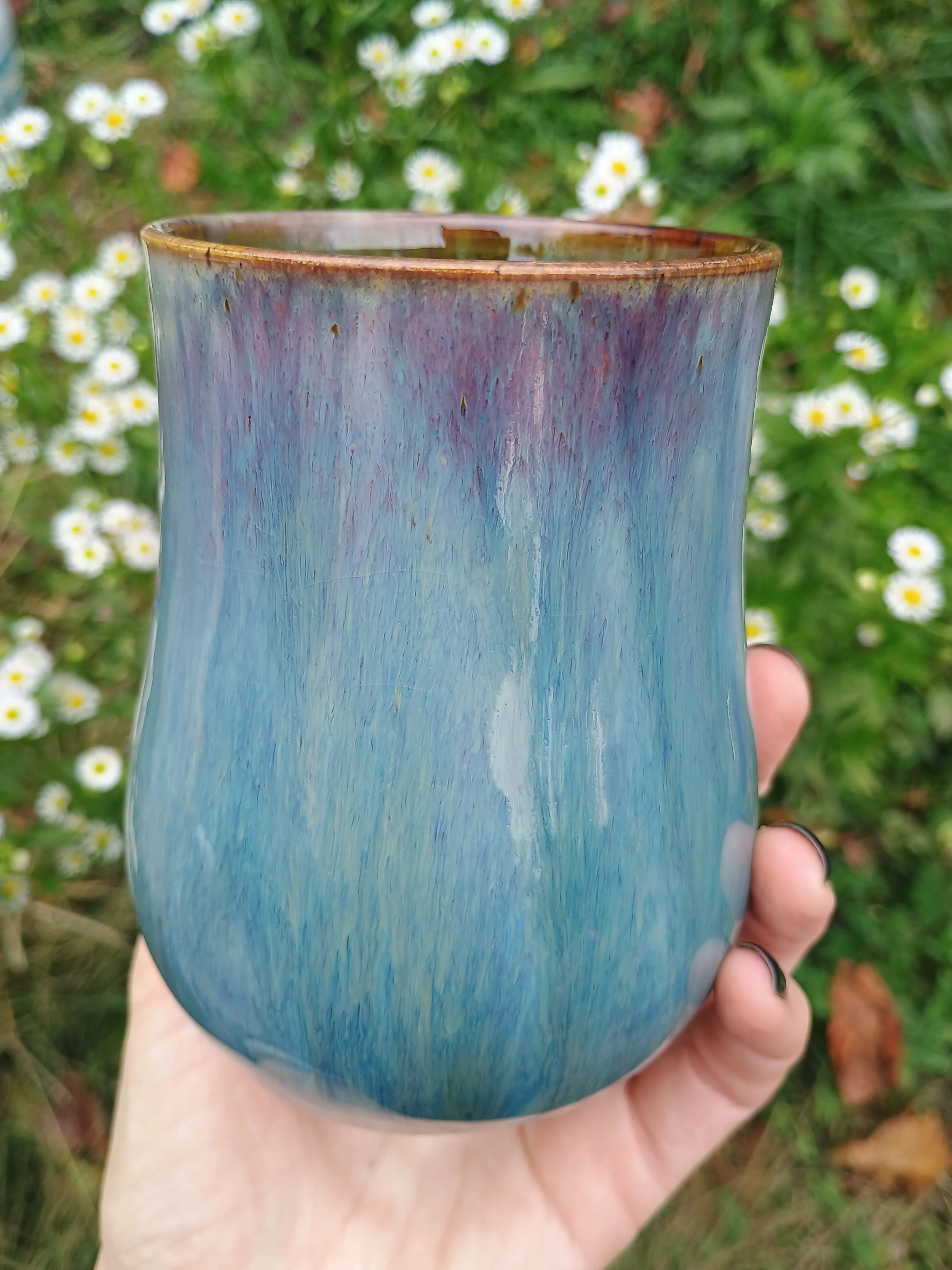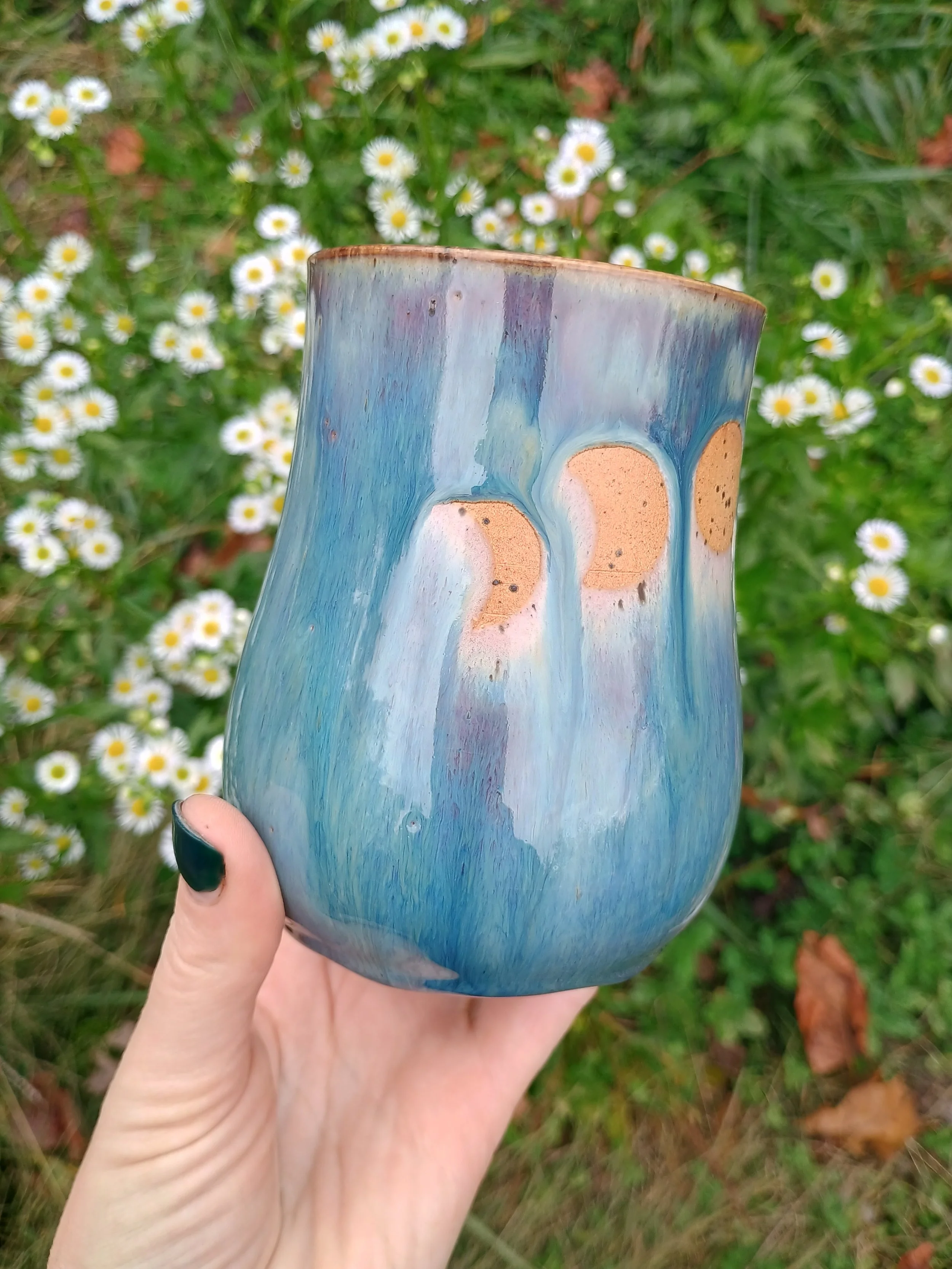 The glaze on this tumbler turned out gorgeoussss. Unfortunately I had to sand it down in the back, so it's been discounted. Microwave and dishwasher safe but hand washing is strongly encouraged 💕
