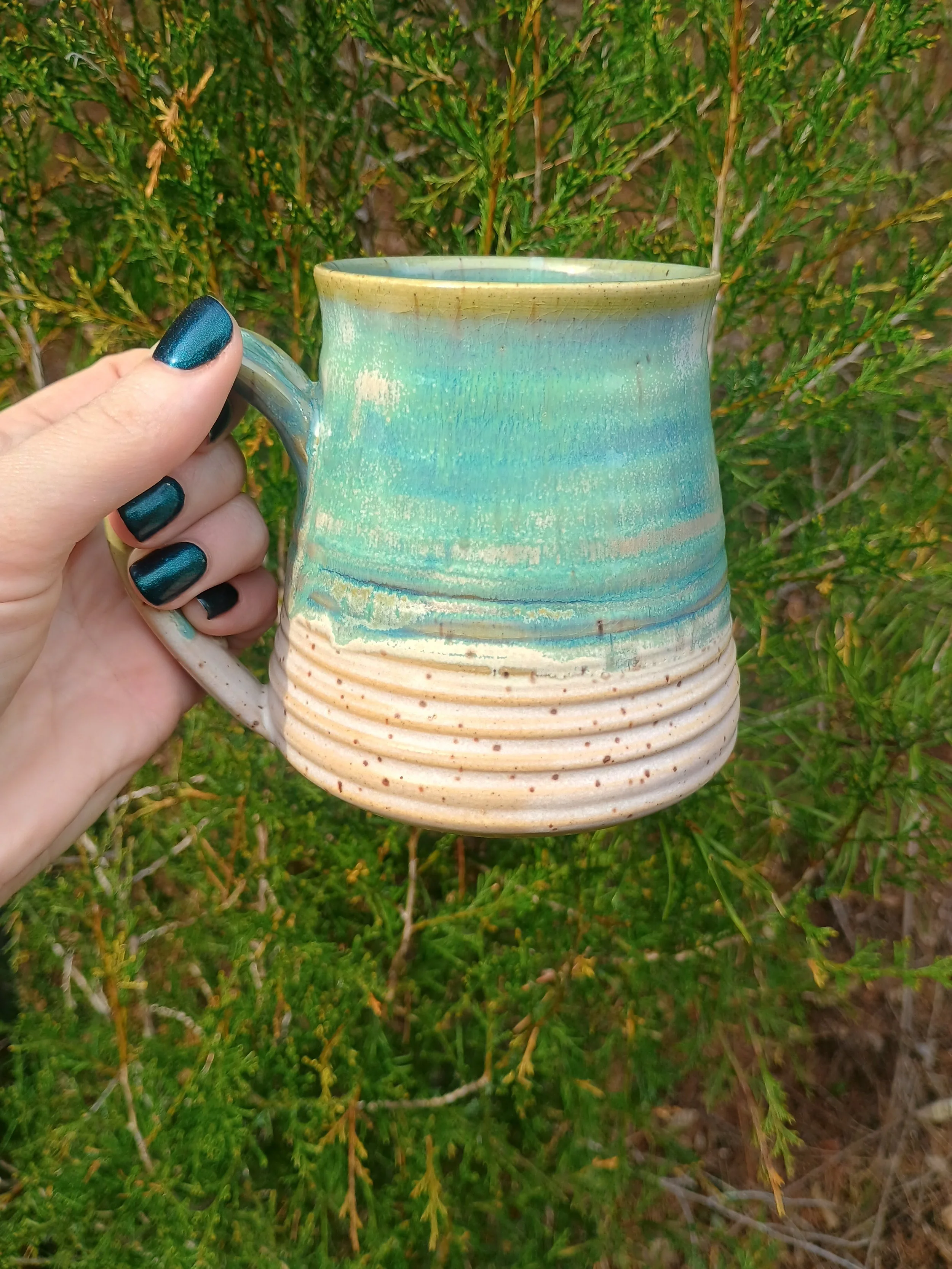 Shop › Textured Turqoise Mug Image 1 of 8 Image 2 of 8 Image 3 of 8 Image 4 of 8 Image 5 of 8 Image 6 of 8 Image 7 of 8 Image 8 of 8 Textured Turqoise Mug $62.00 Microwave and dishwasher safe but hand washing is strongly encouraged 💕 Add To Cart Added! Microwave and dishwasher safe but hand washing is strongly encouraged 💕