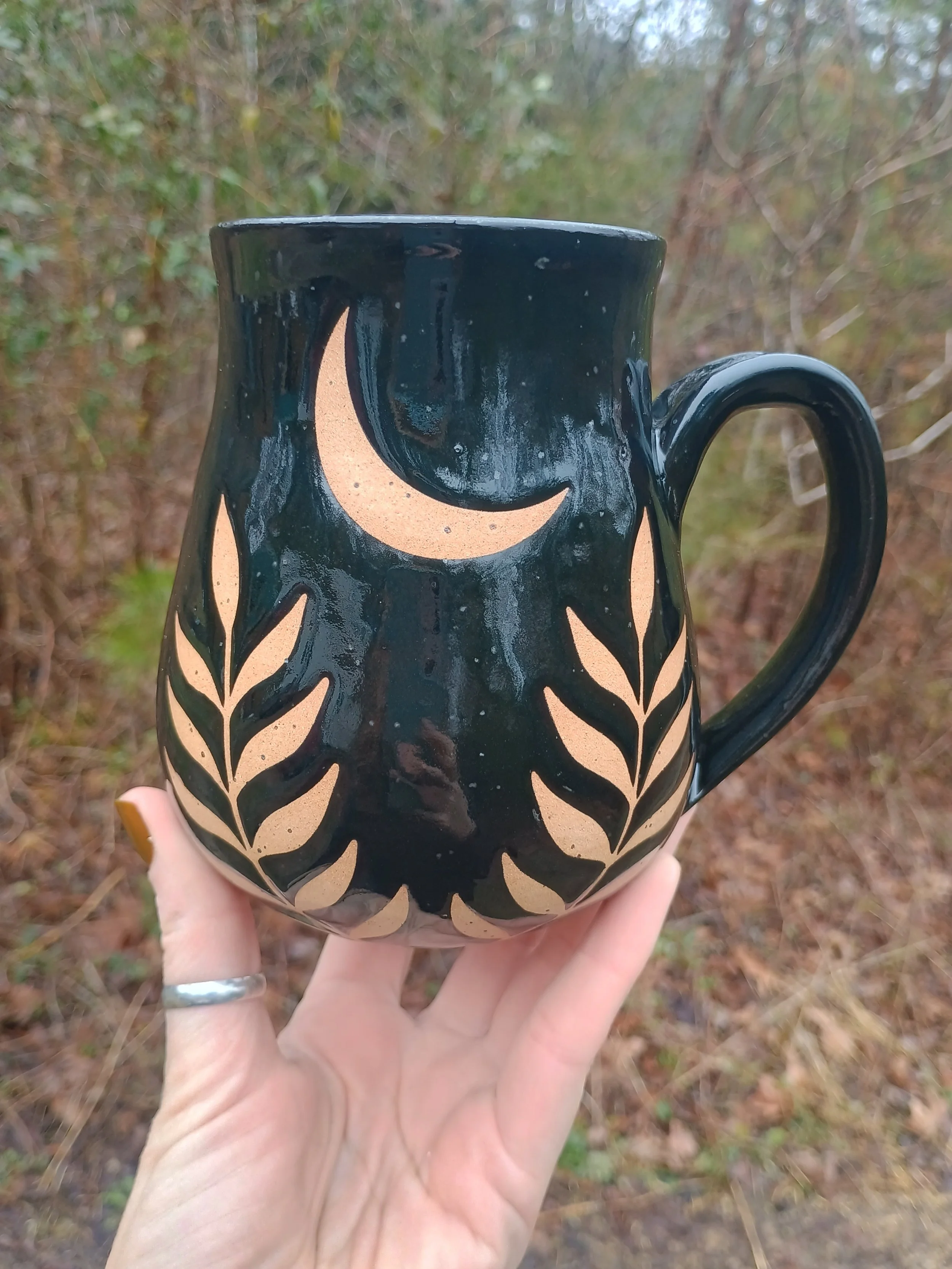 Shop › Large Moon & Ferns Mug Image 1 of 7 Image 2 of 7 Image 3 of 7 Image 4 of 7 Image 5 of 7 Image 6 of 7 Image 7 of 7 Large Moon & Ferns Mug $72.00 Microwave and dishwasher safe but hand washing is strongly encouraged 💕 Add To Cart Added! Microwave and dishwasher safe but hand washing is strongly encouraged 💕