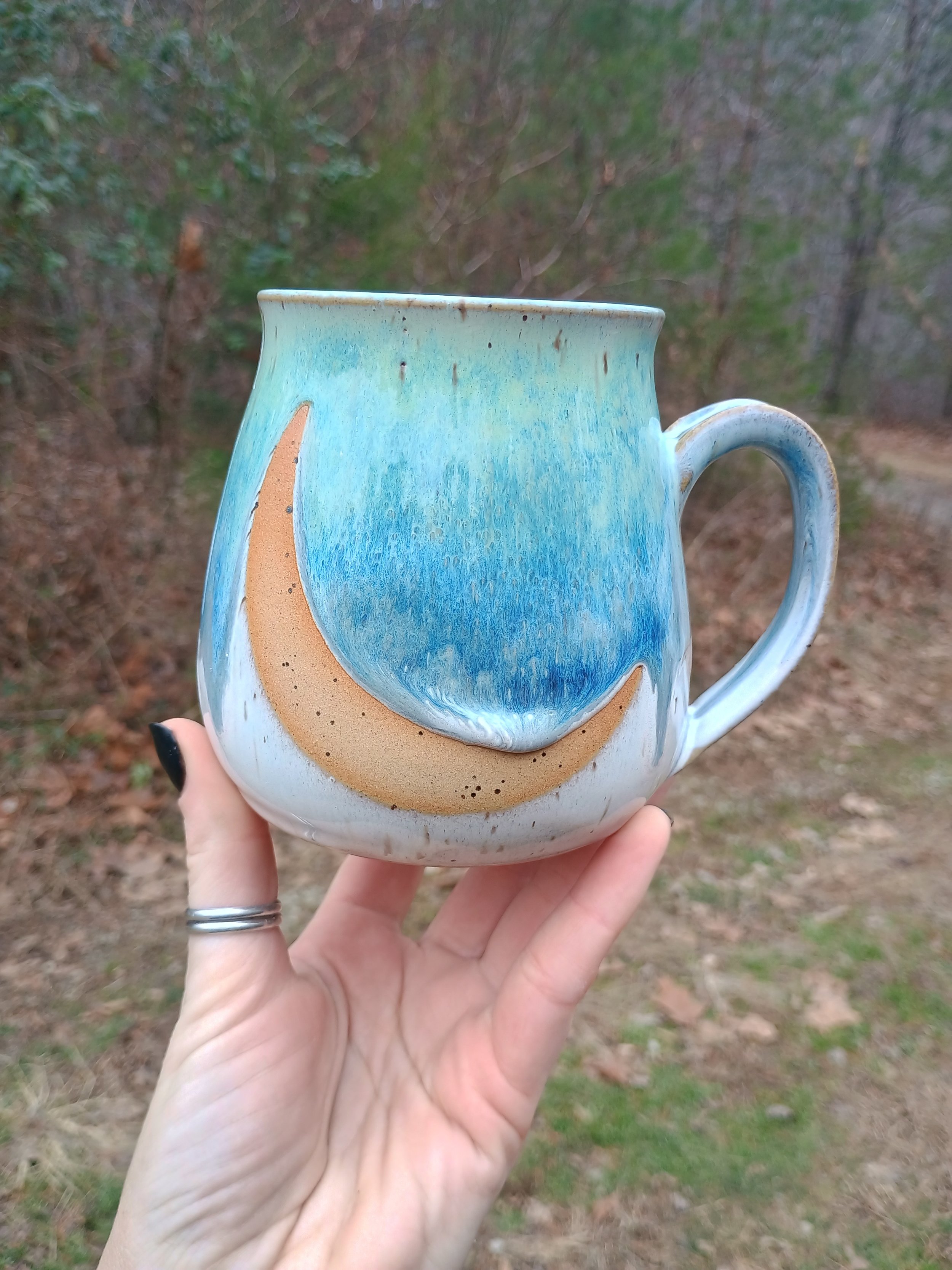 Shop › Drippy Blue and Turquoise Speckled Moon Mug Image 1 of 5 Image 2 of 5 Image 3 of 5 Image 4 of 5 Image 5 of 5 Drippy Blue and Turquoise Speckled Moon Mug $62.00 Microwave and dishwasher safe but hand washing is strongly encouraged 💕 Add To Cart Added! Microwave and dishwasher safe but hand washing is strongly encouraged 💕 ADD ON Glitter Ring Dish $14.00 Add To Cart