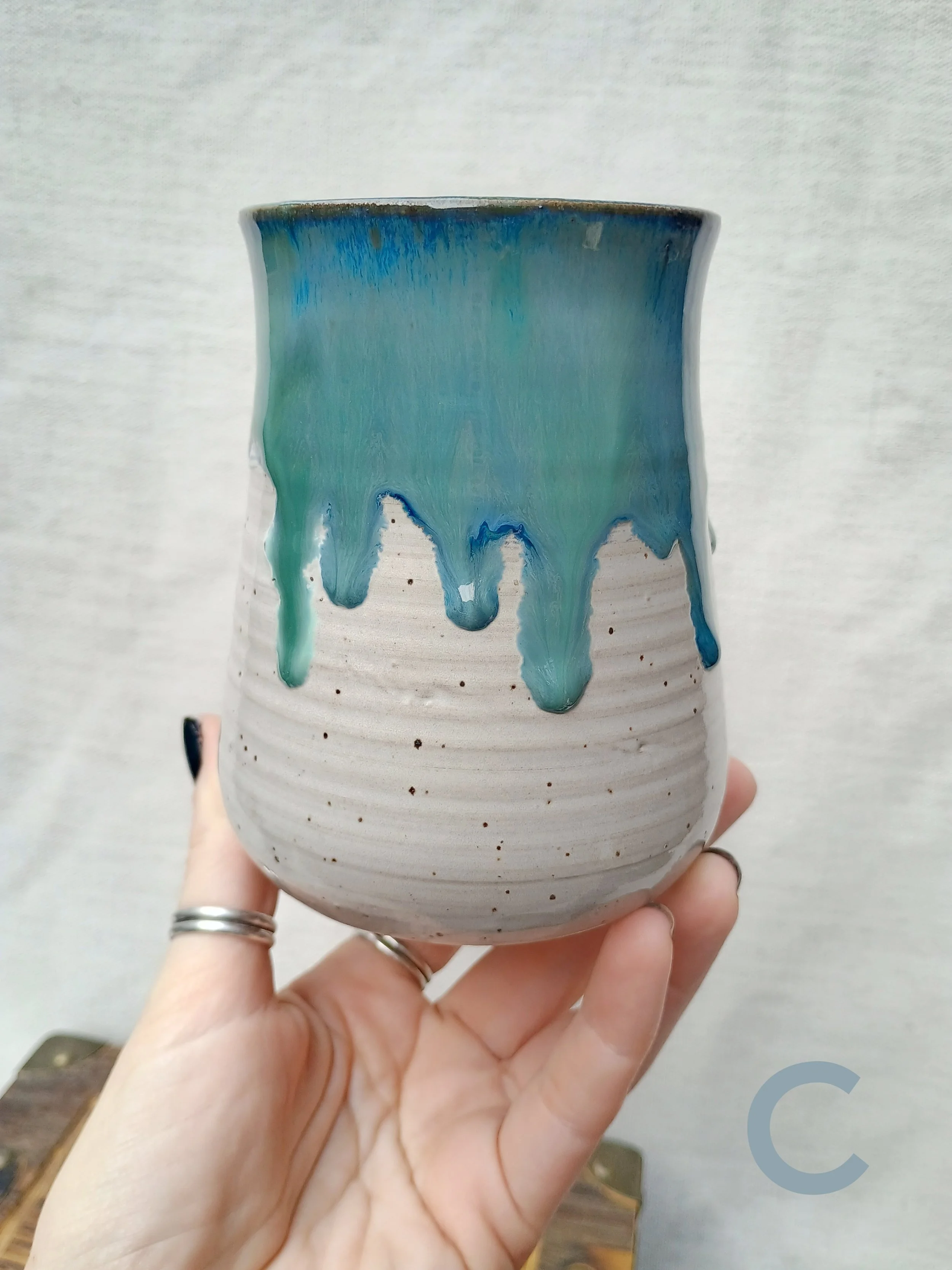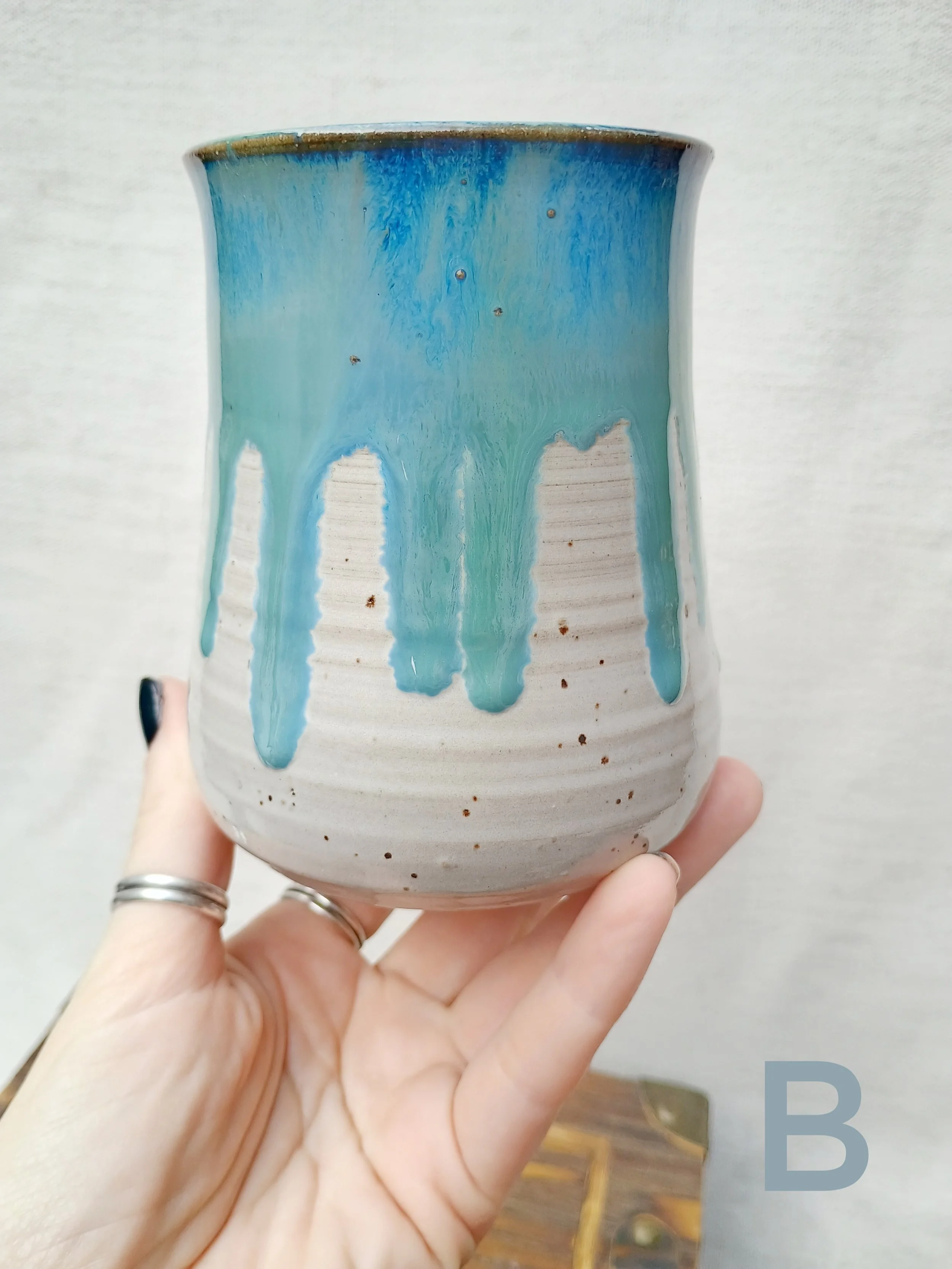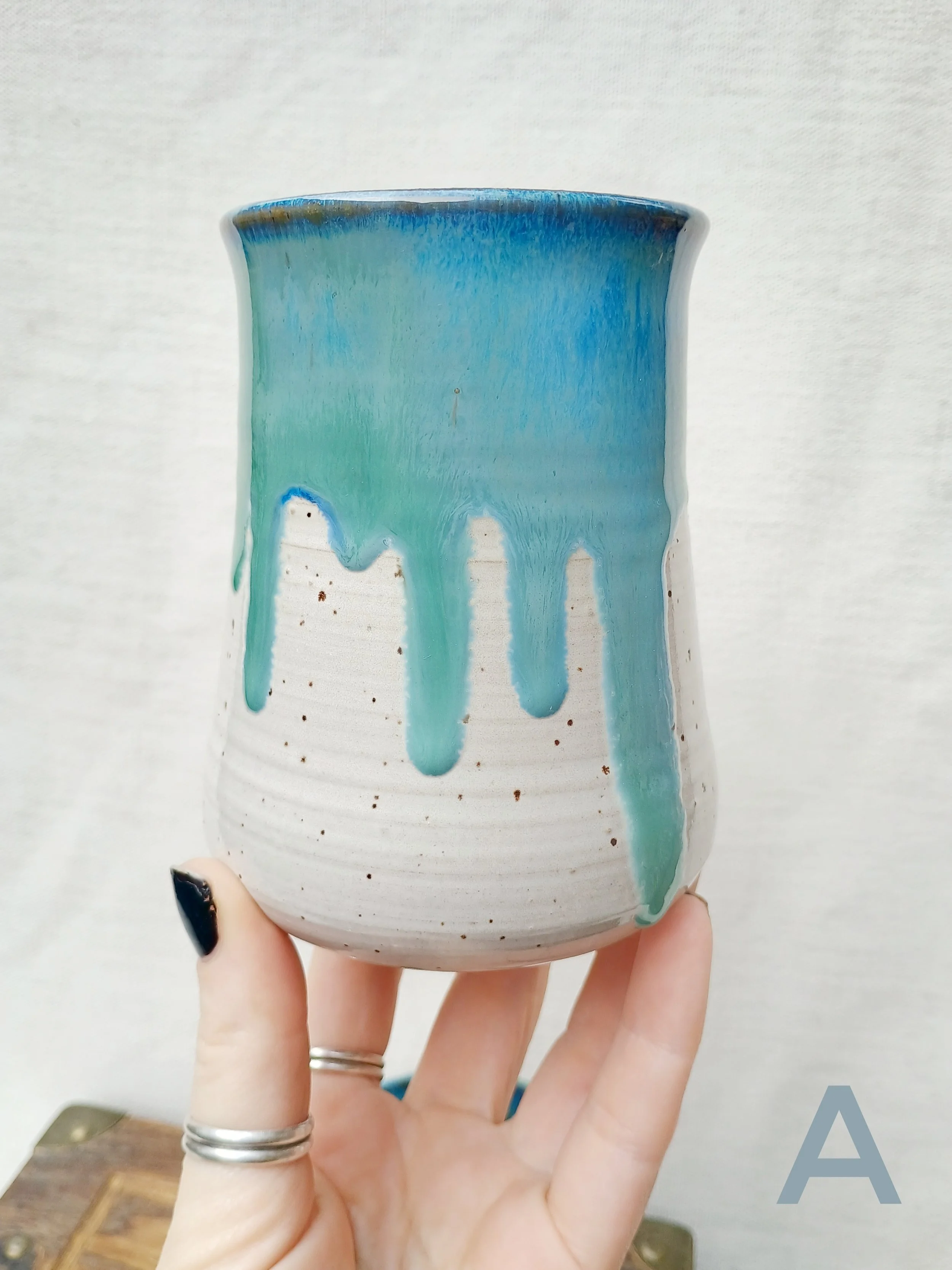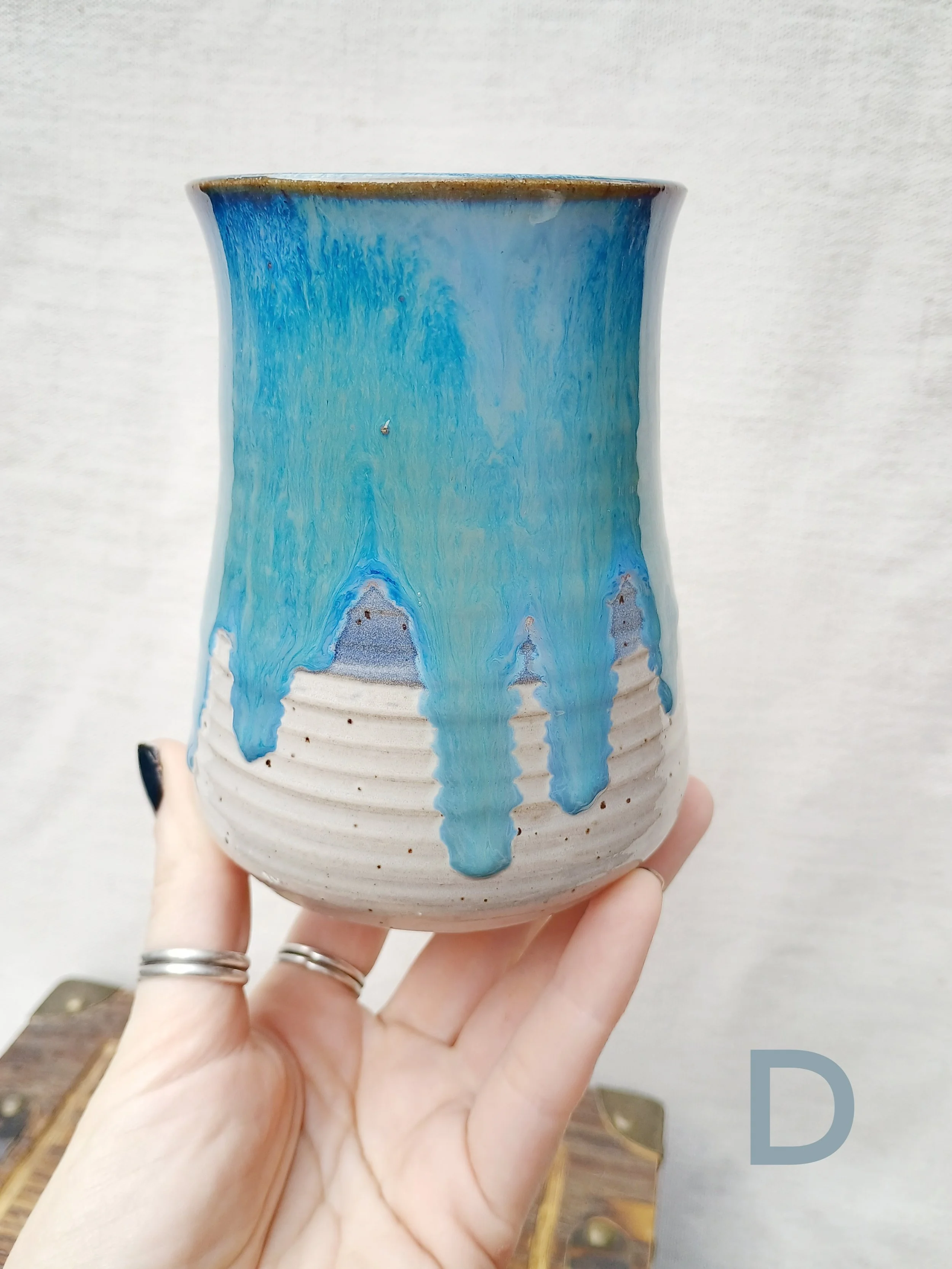 Shop › Drippy Blue & White Tumblers Image 1 of 5 Image 2 of 5 Image 3 of 5 Image 4 of 5 Image 5 of 5 Drippy Blue & White Tumblers $25.00 Microwave and dishwasher safe but hand washing is encouraged 💕 Which Cup?: A B C D Quantity: Add To Cart Added! Microwave and dishwasher safe but hand washing is encouraged 💕 ADD ON Glitter Ring Dish $14.00 Add To Cart