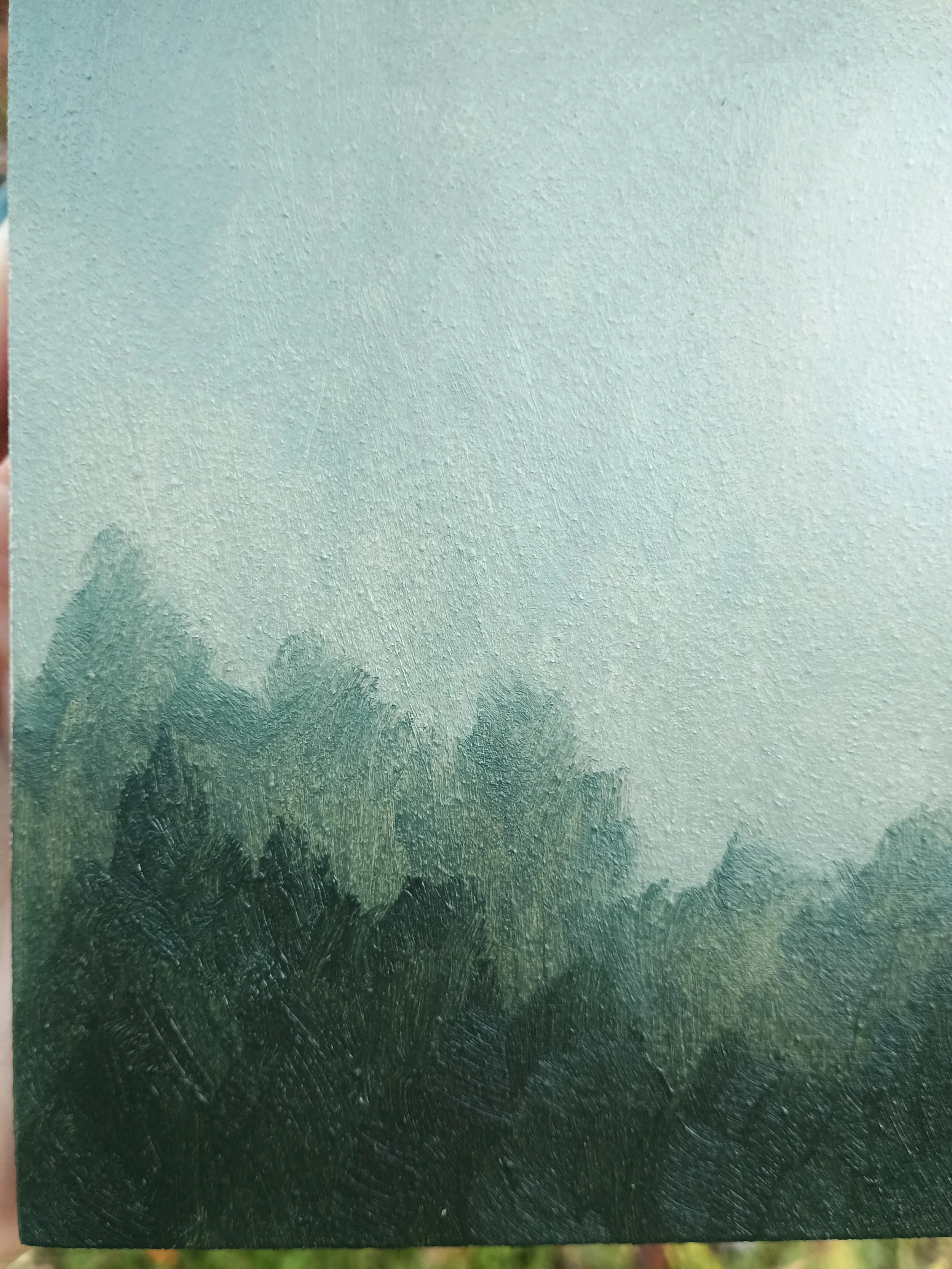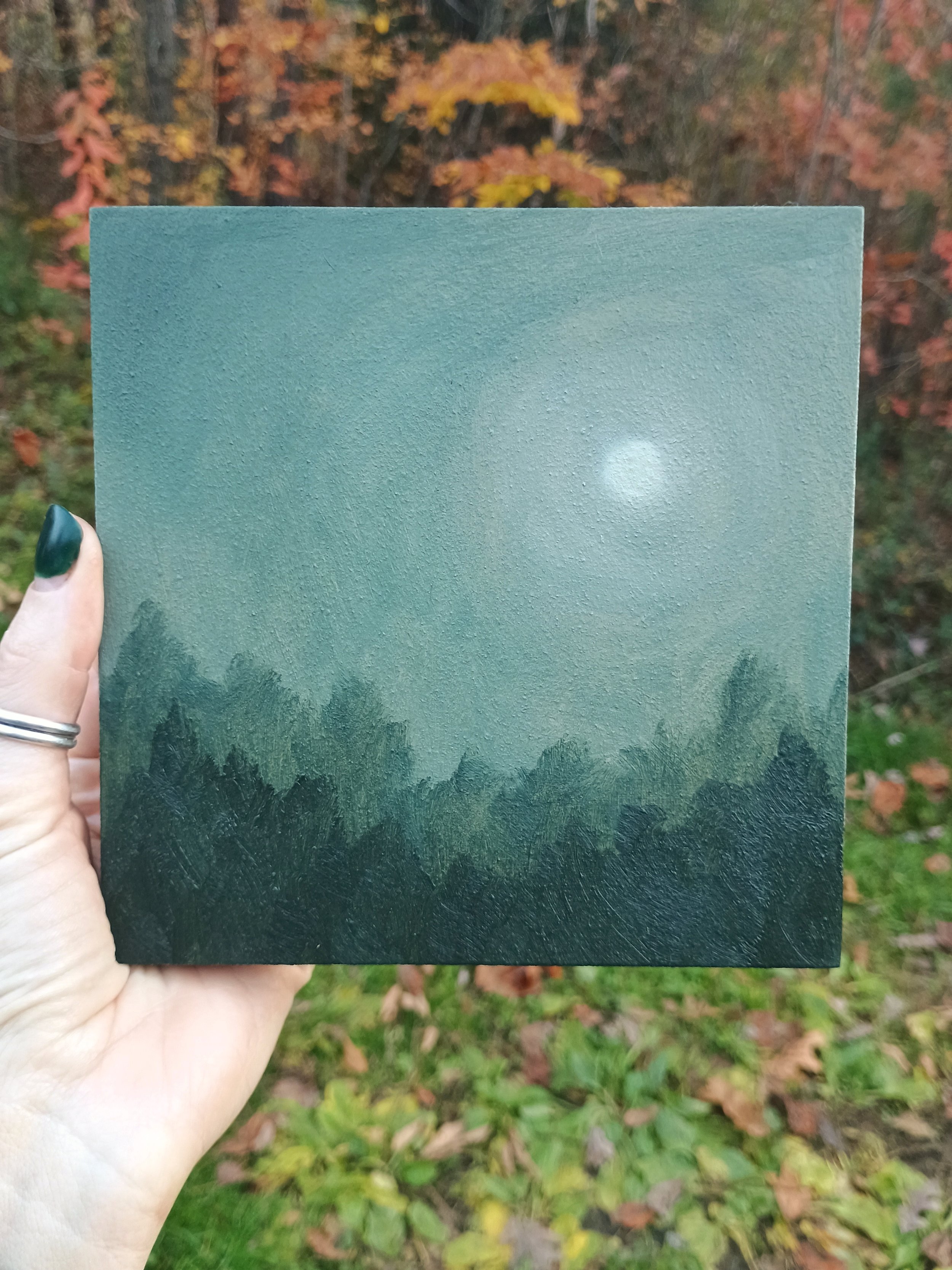 A 6x6” oil painting on a cradled panel. The edges are painted to match. I love the moodiness and the textures in this piece ☺️