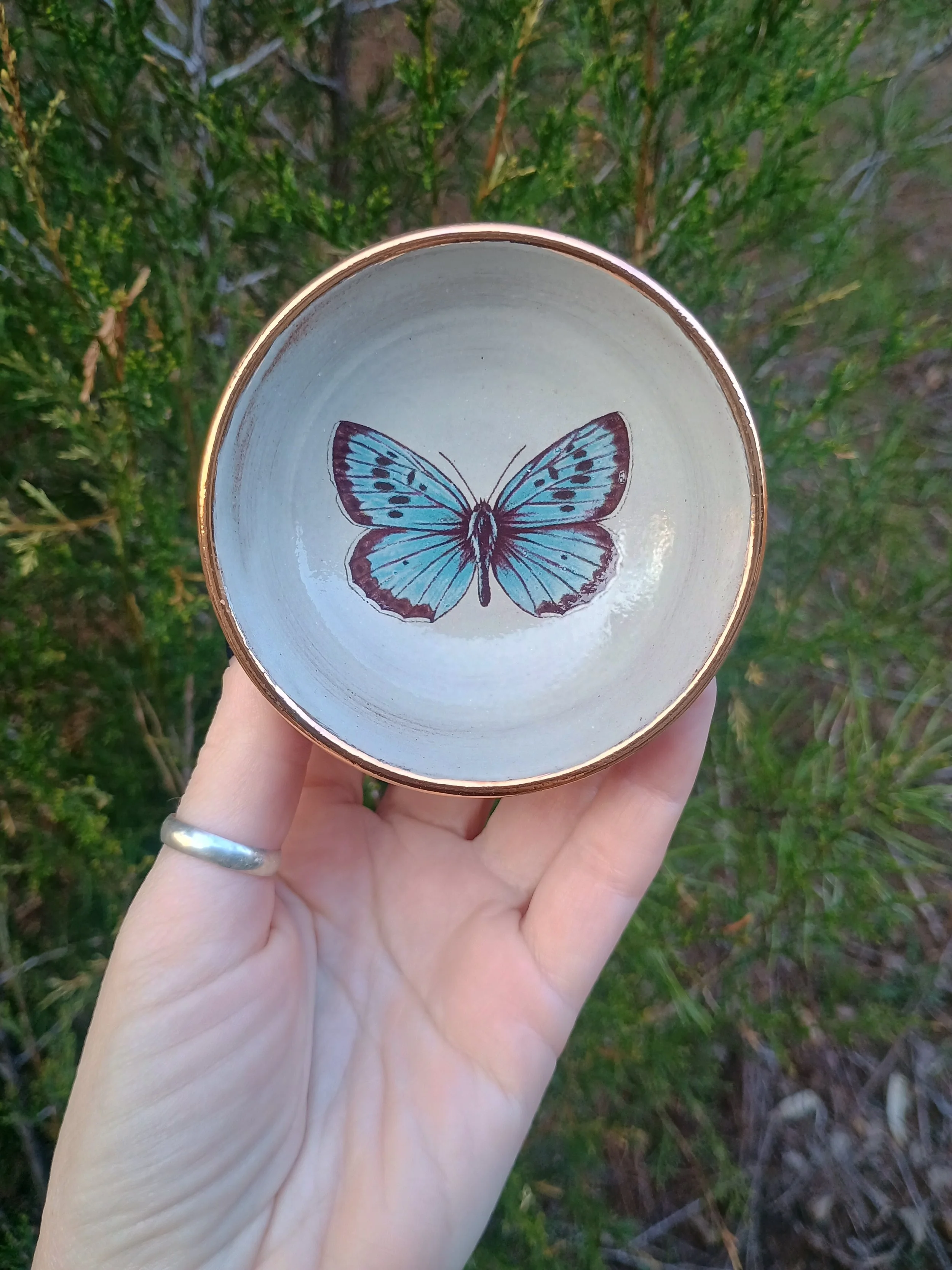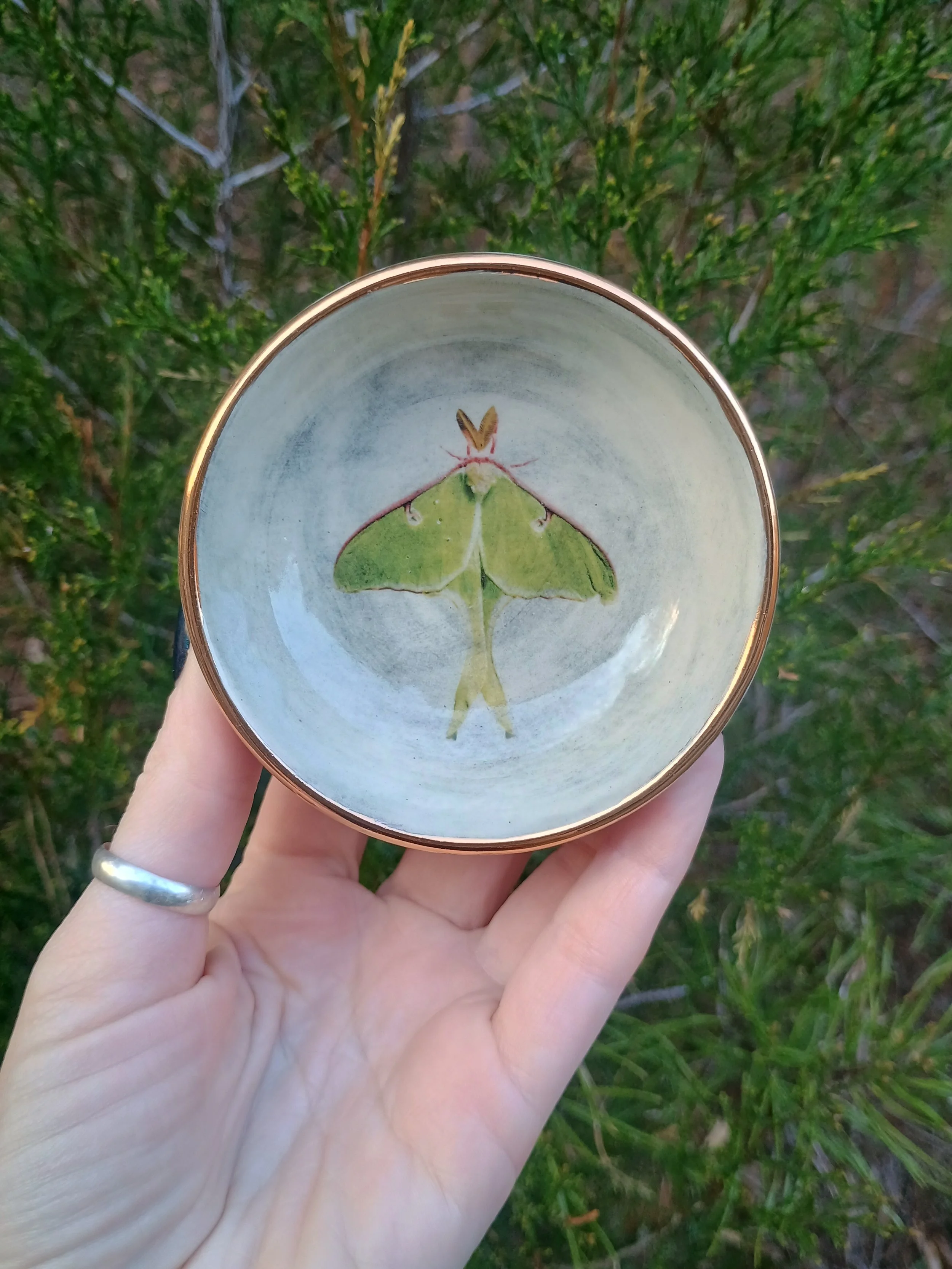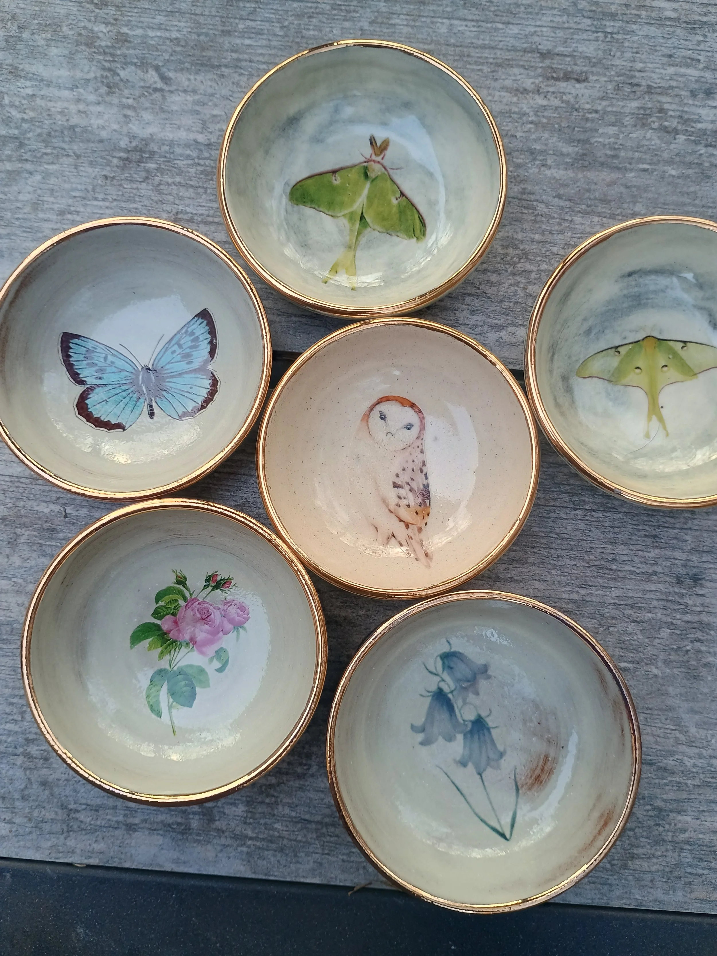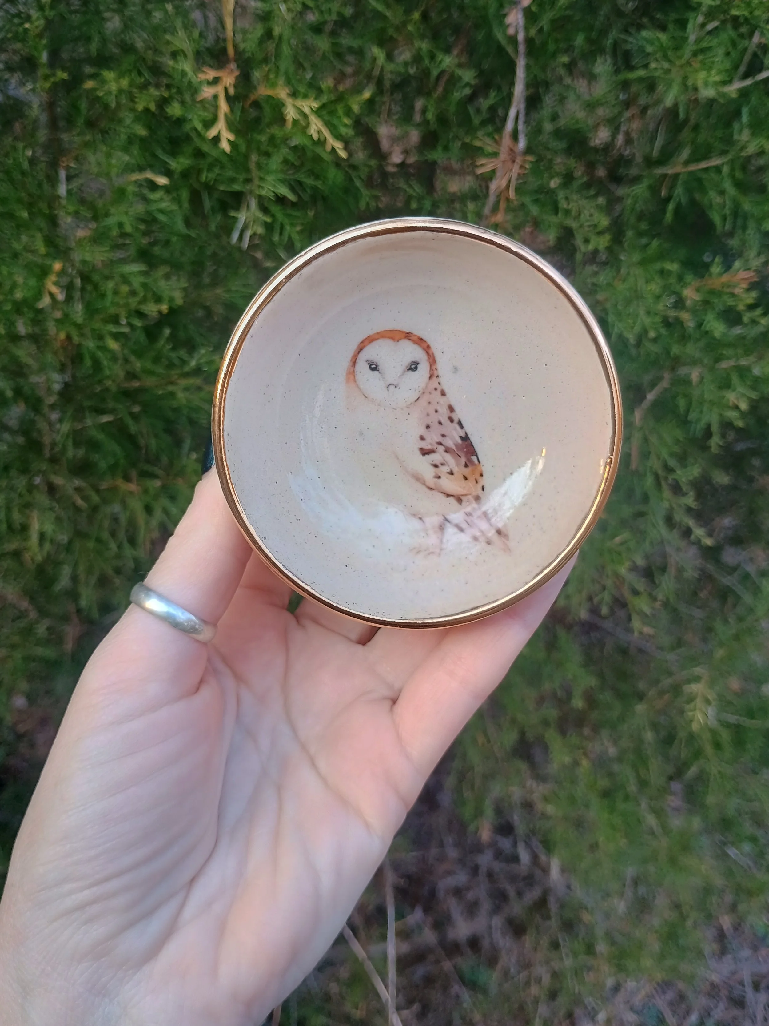 Shop › ADD ON Gold-Rimmed Ring Dishes Image 1 of 14 Image 2 of 14 Image 3 of 14 Image 4 of 14 Image 5 of 14 Image 6 of 14 Image 7 of 14 Image 8 of 14 Image 9 of 14 Image 10 of 14 Image 11 of 14 Image 12 of 14 Image 13 of 14 Image 14 of 14 ADD ON Gold-Rimmed Ring Dishes $25.00 Which Dish?: Vintage Rose Bluebells Barn Owl Butterfly Larger Luna Smaller Luna Add To Cart Added!