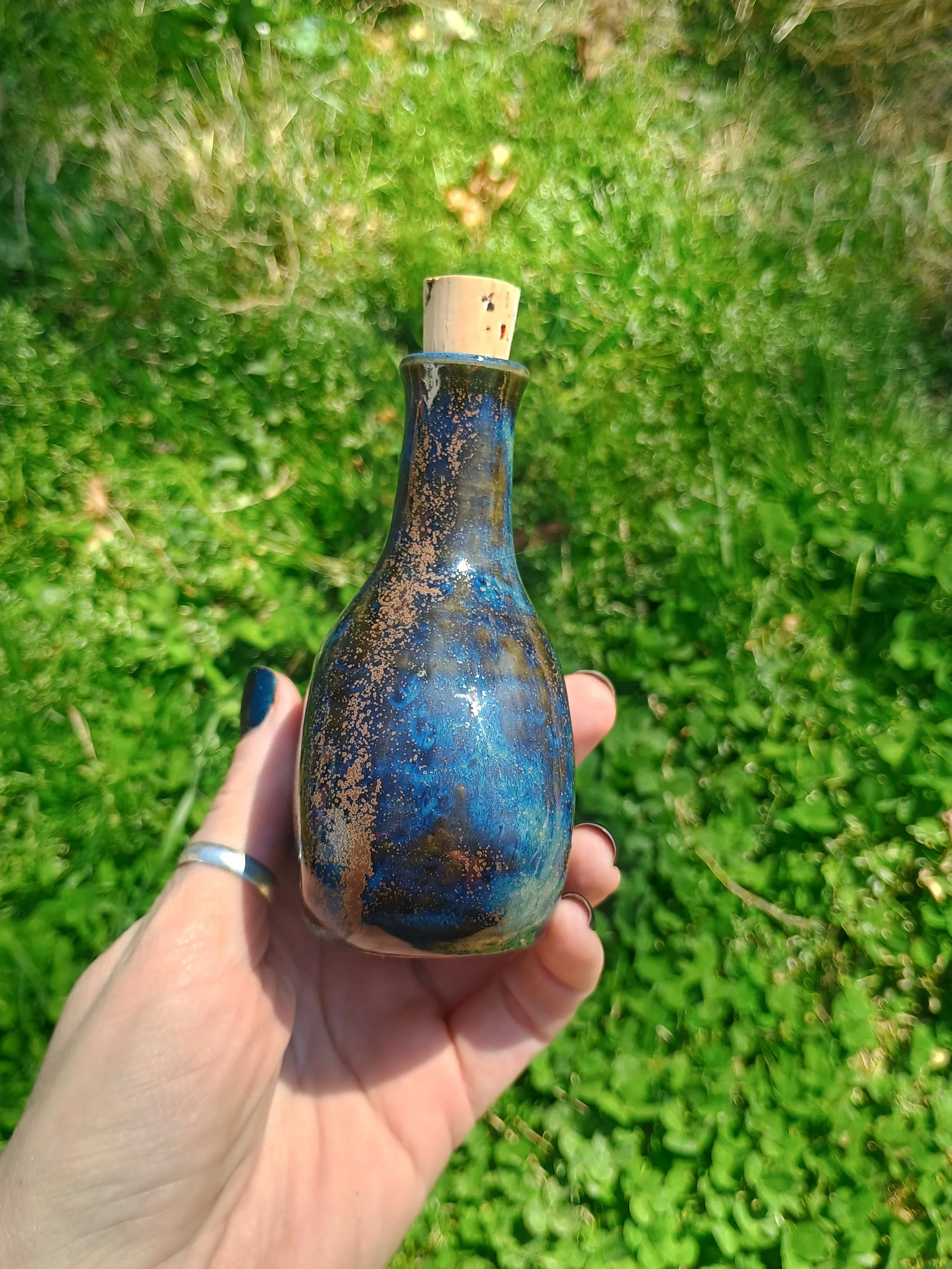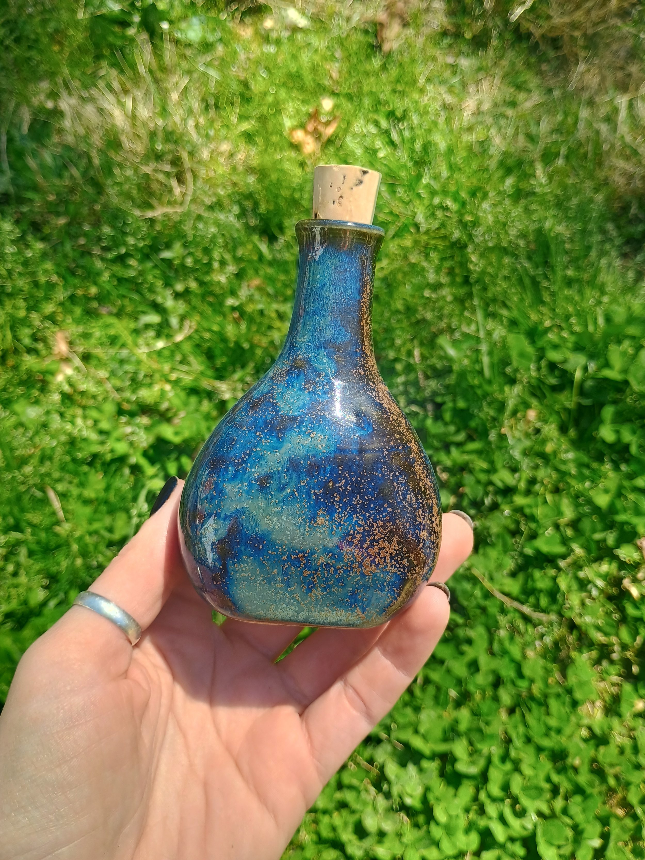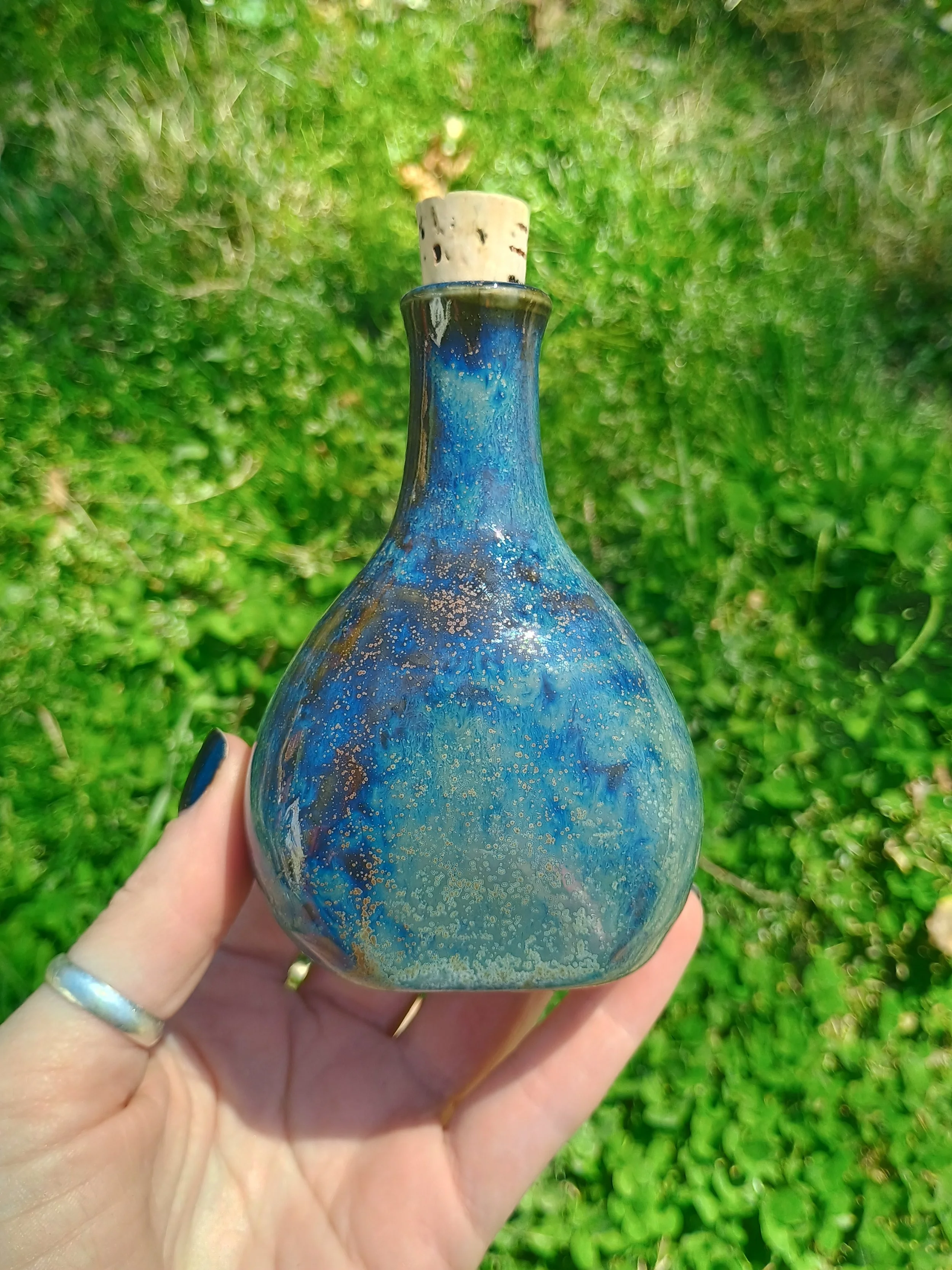 This little jar was thrown on my wheel and then altered by squishing the sides flat with two boards. The glaze is special because one of the two glazes used to produce this result has been discontinued, so I only have a bit left ☺️
