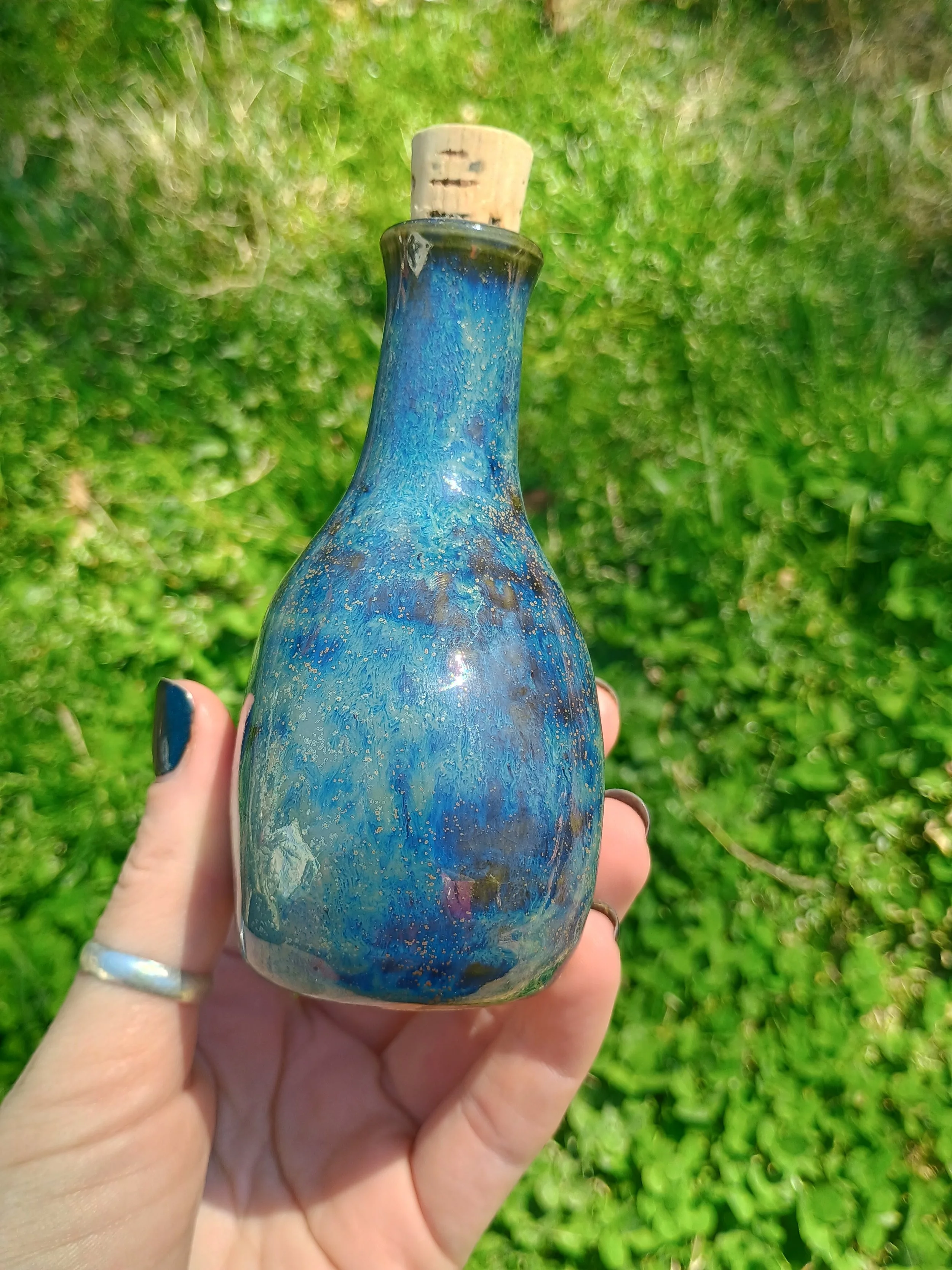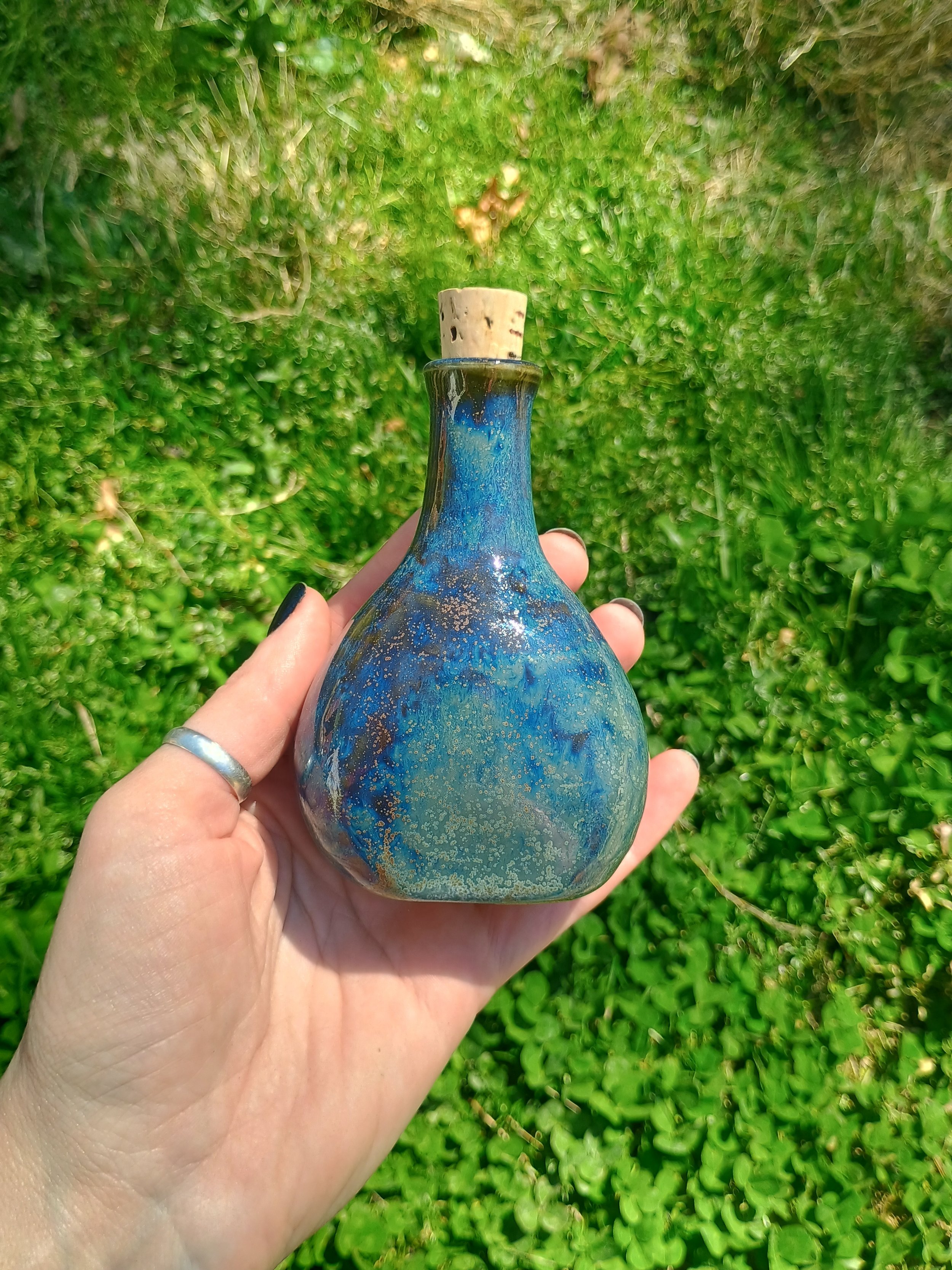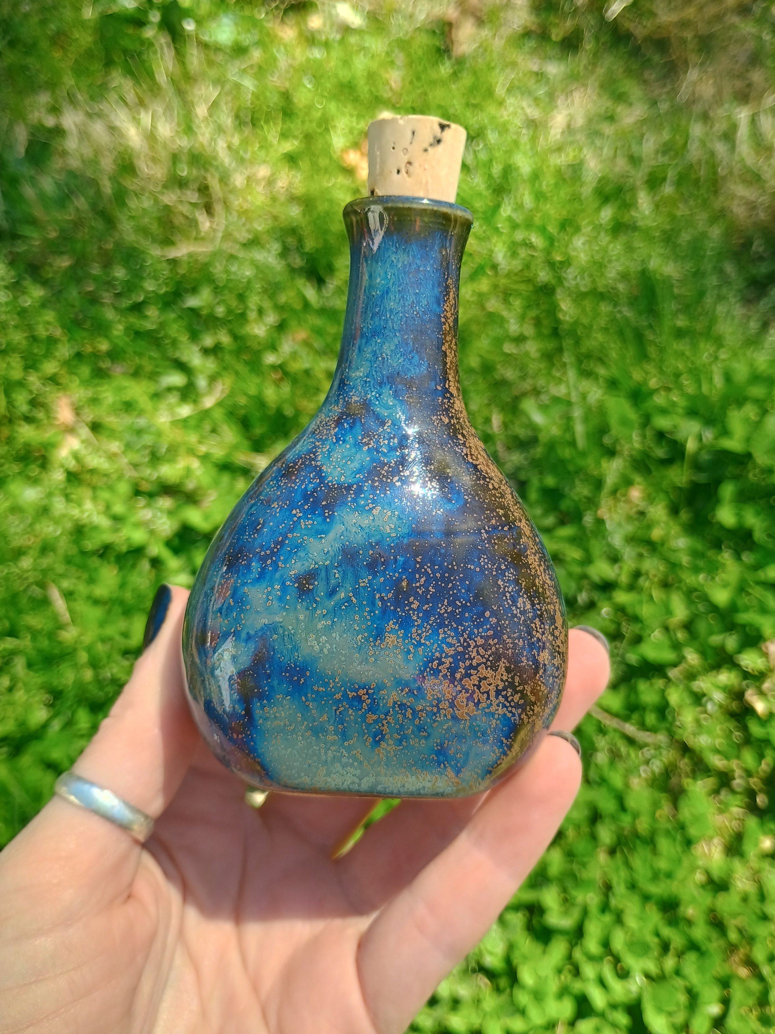 This little jar was thrown on my wheel and then altered by squishing the sides flat with two boards. The glaze is special because one of the two glazes used to produce this result has been discontinued, so I only have a bit left ☺️