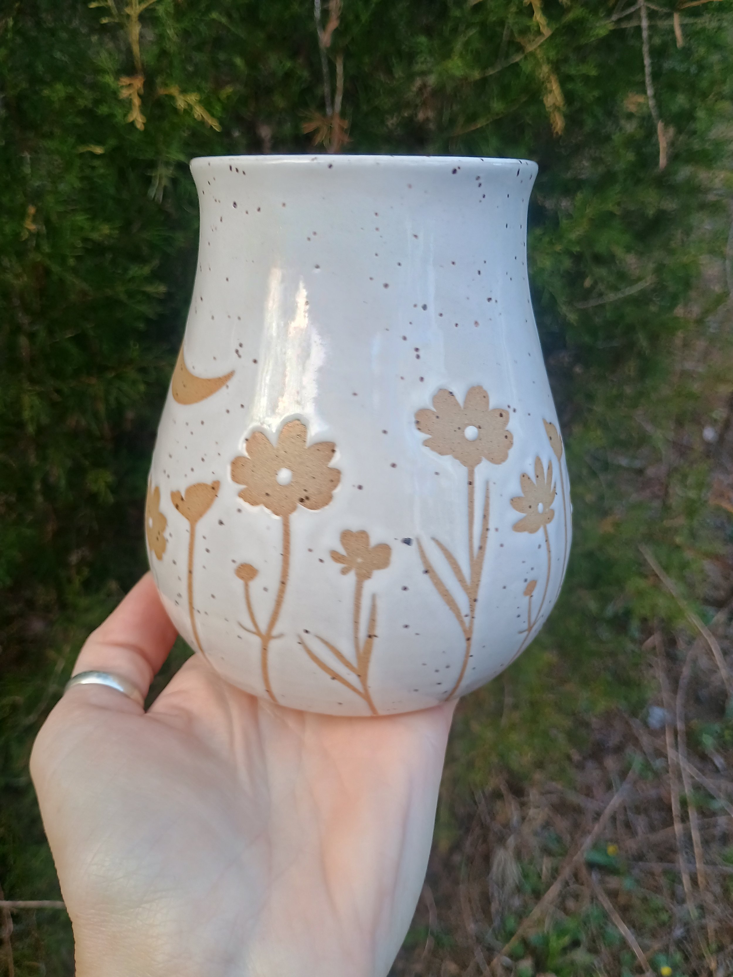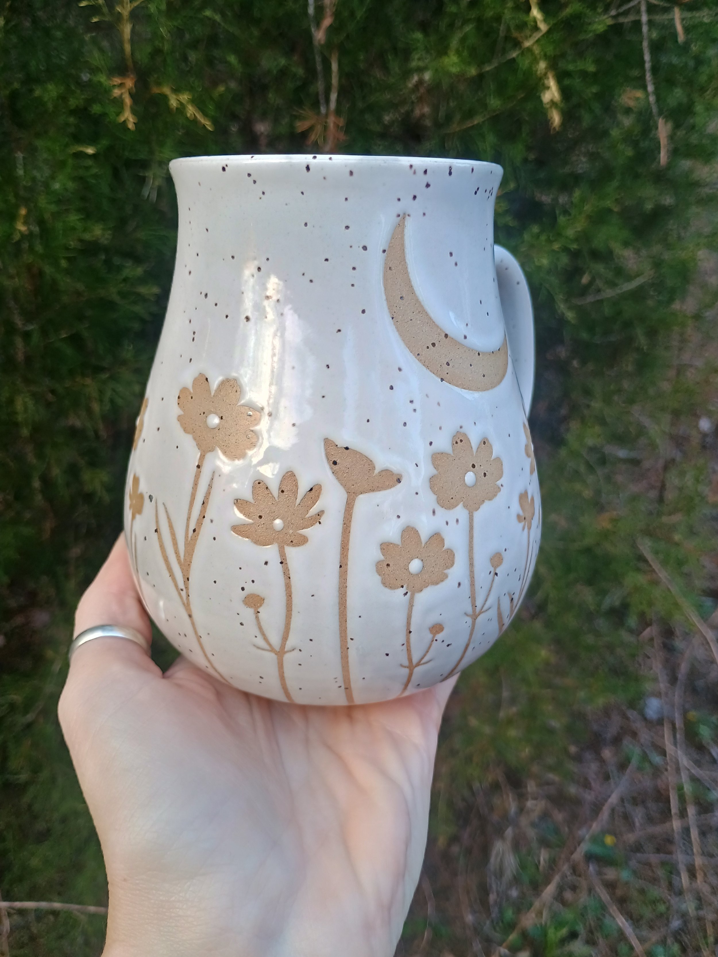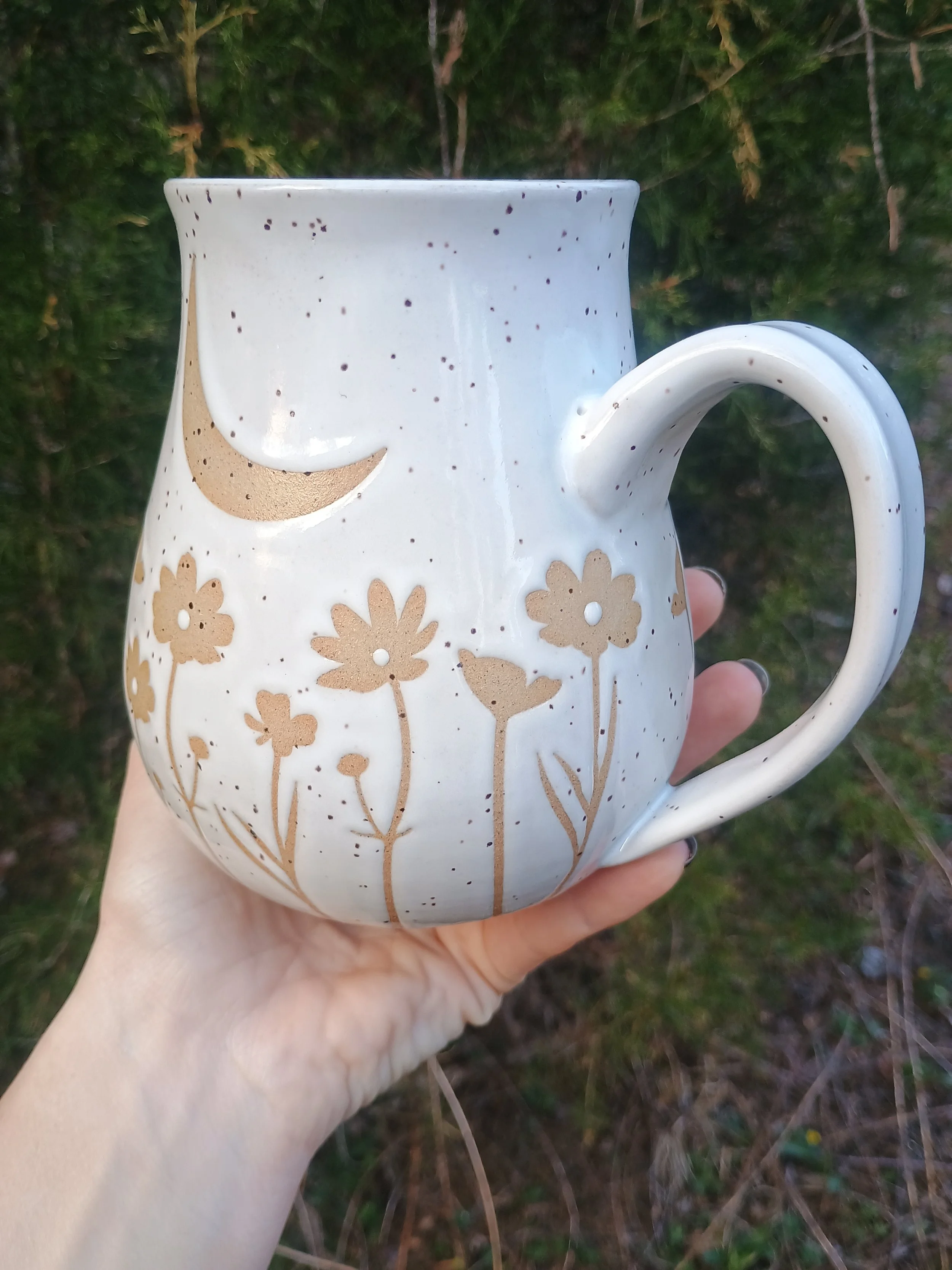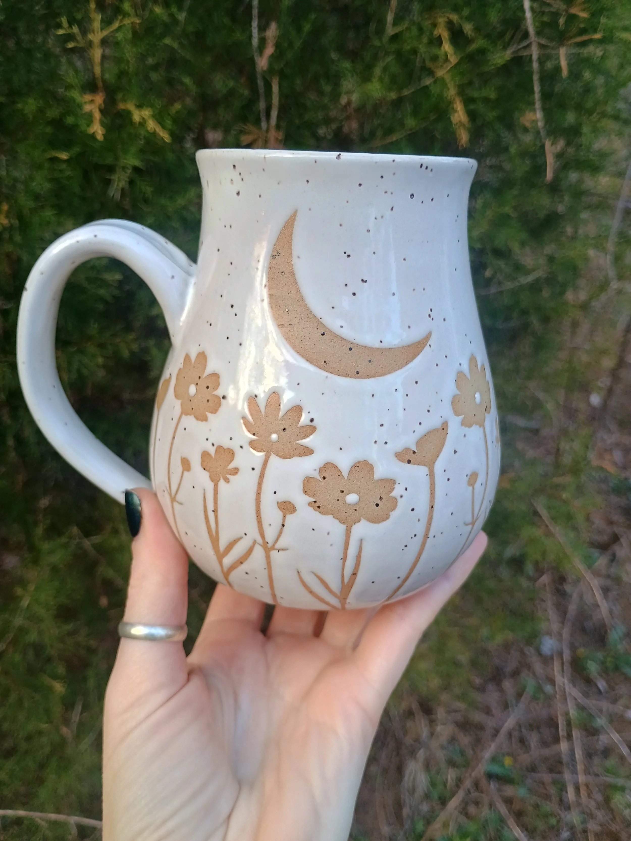 Shop › Moonlit Meadow Mug Image 1 of 7 Image 2 of 7 Image 3 of 7 Image 4 of 7 Image 5 of 7 Image 6 of 7 Image 7 of 7 Moonlit Meadow Mug $75.00 Microwave and dishwasher safe but hand washing is strongly encouraged 💕 Add To Cart Added! Microwave and dishwasher safe but hand washing is strongly encouraged 💕